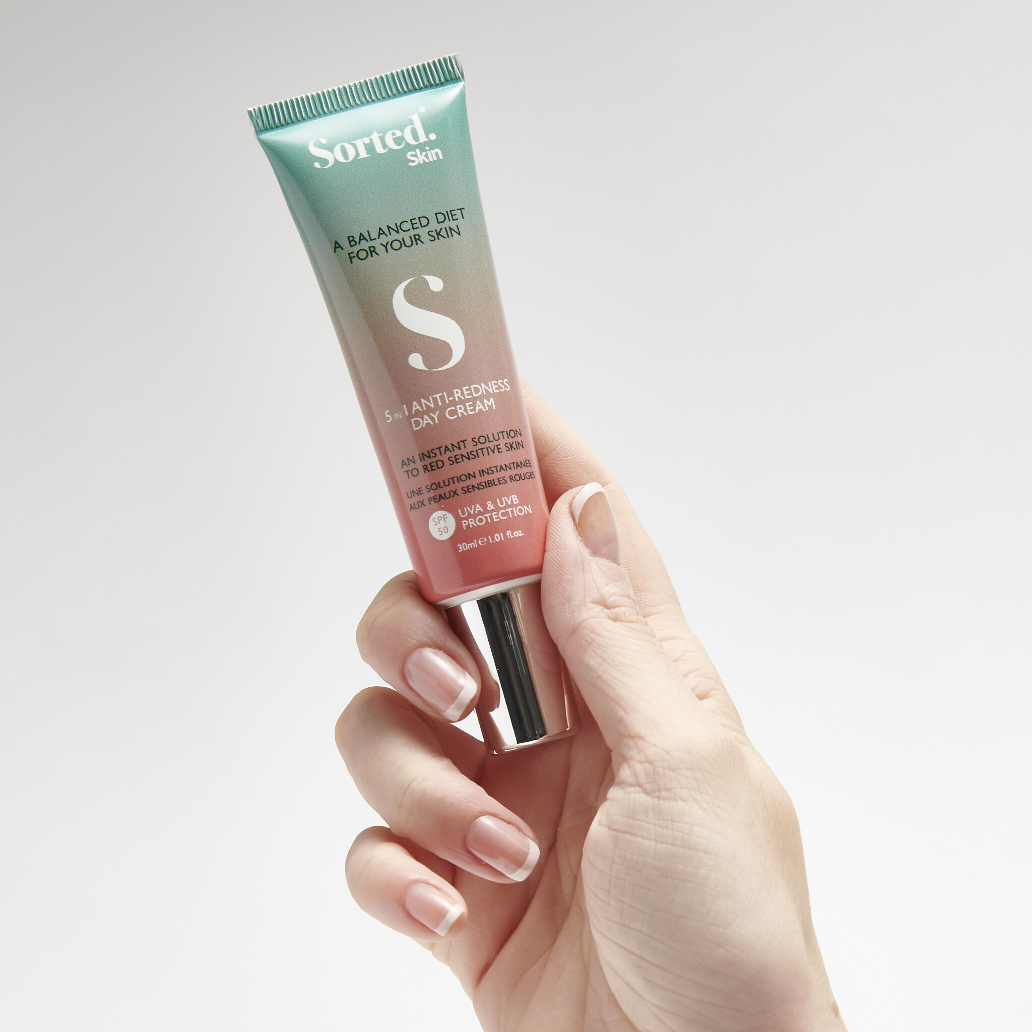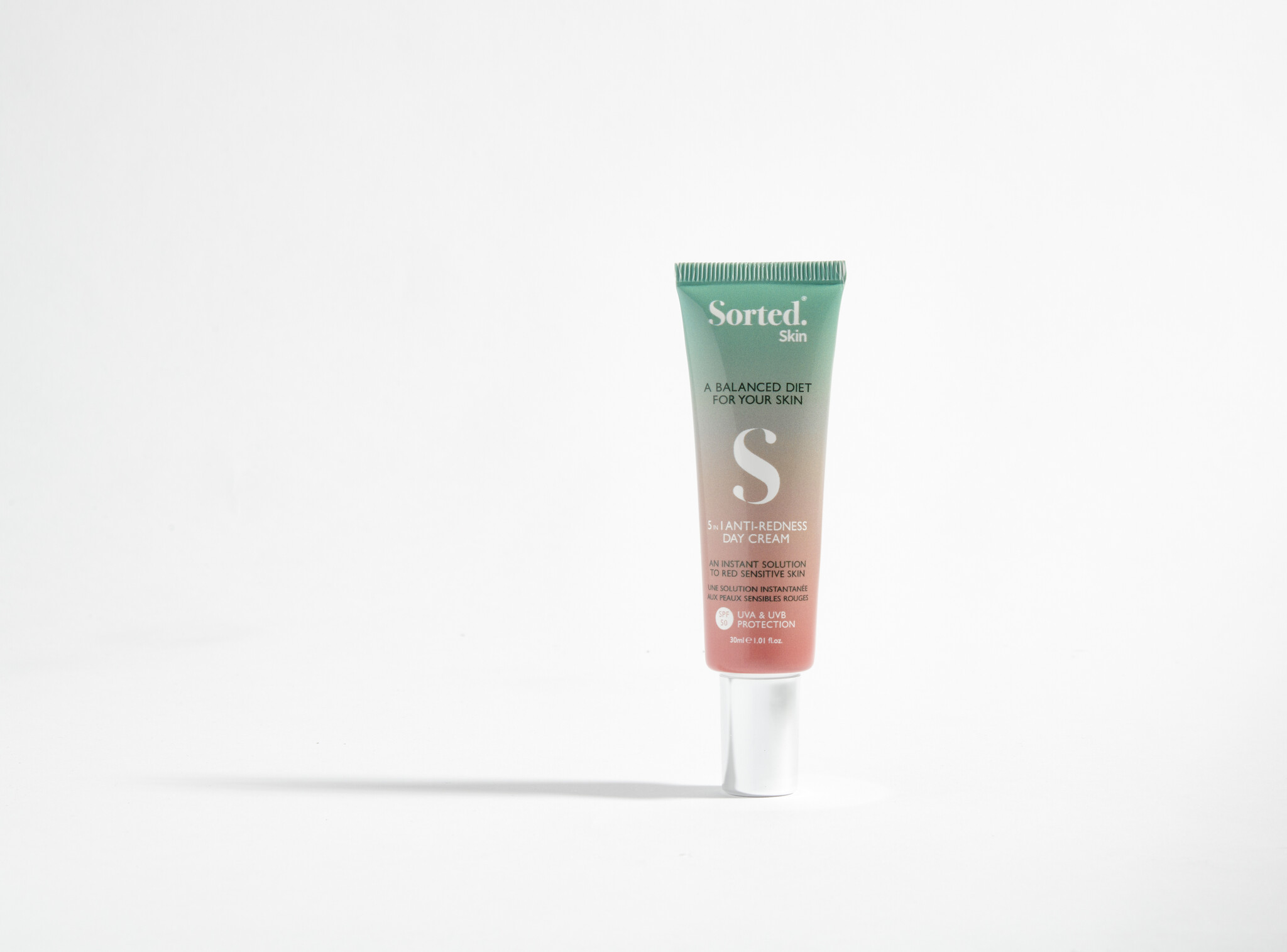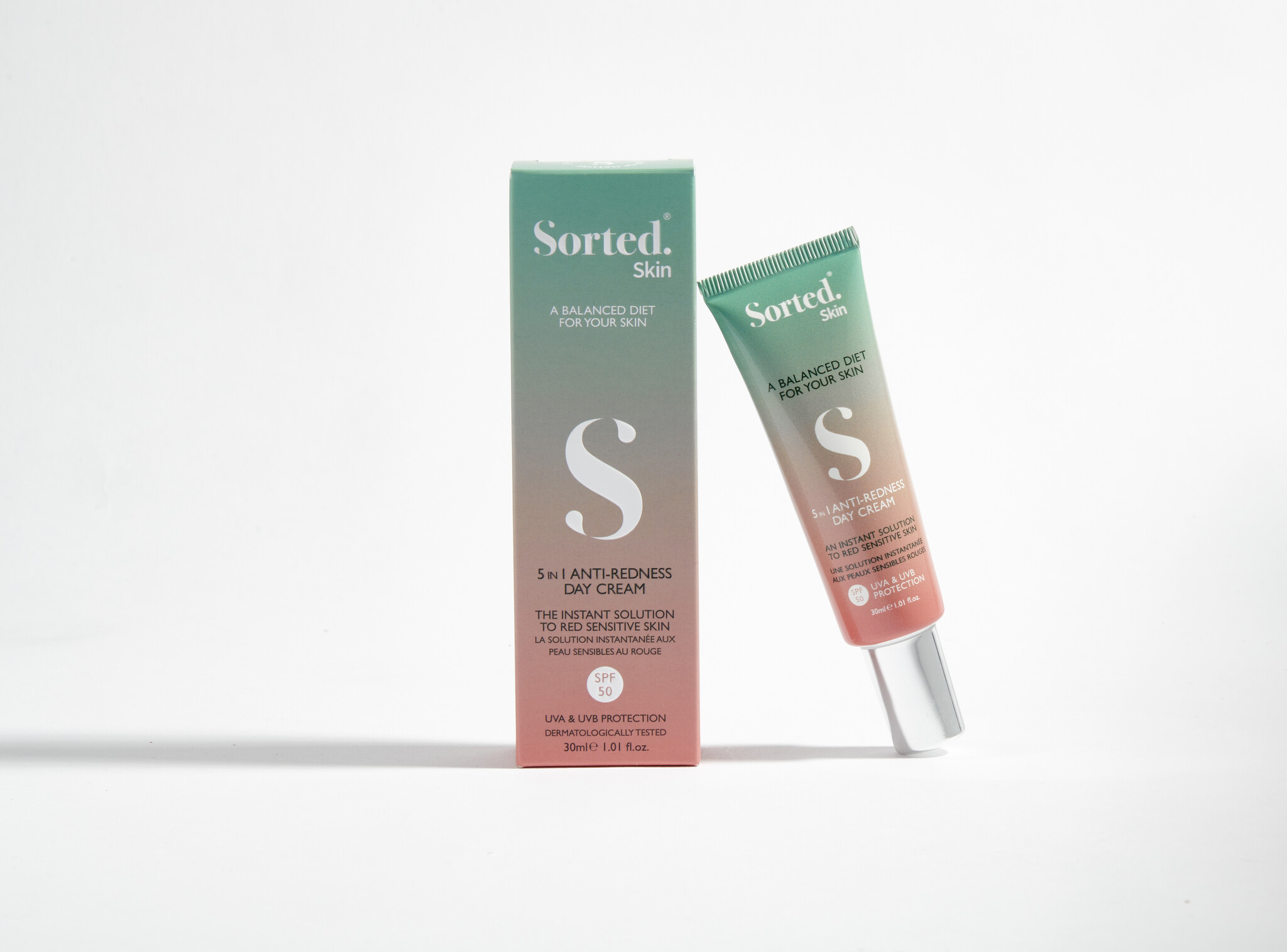 Bij langdurig gebruik kan Sorted Skin 5 in 1 Anti-Redness Dagcrème SPF50 de huid weer gezond maken door de natuurlijke beschermlaag in stand te houden en de oorzaken van roodheid aan te pakken. Het bevat een krachtige SPF50 UVA en UVB filter samen met een natuurlijke blauw licht filter om digitale veroudering te voorkomen.
