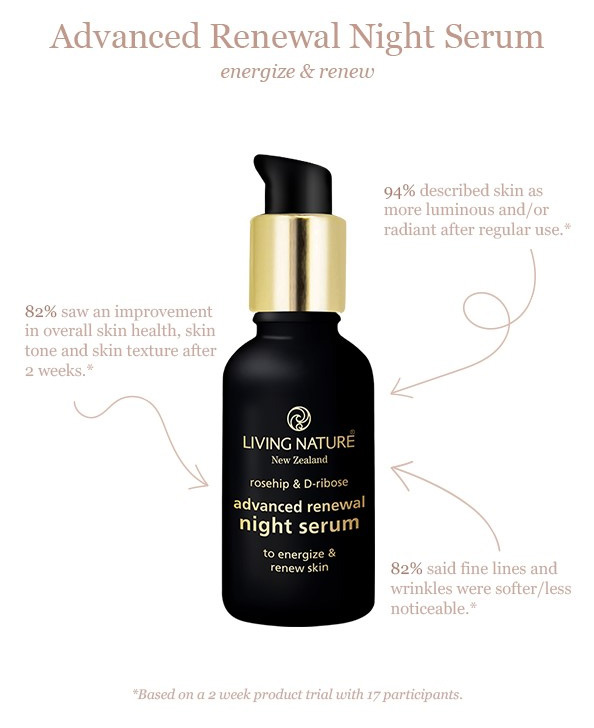 Geef uw huid energie en vernieuw uw huid op cellulair niveau met Living Nature’s nieuwe Advanced Renewal Night Serum, samengesteld met actieve natuurlijke ingrediënten om de tekenen van veroudering aan te pakken en een gezonde, stralende huid te bevorderen terwijl u slaapt.