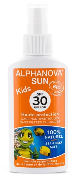 Een gecertificeerde biologische zonnebrandspray met een hoge bescherming voor de gevoelige kinderhuid van gezicht en lichaam. Het natuurlijke minerale filter (titanium dioxide) beschermt tegen zowel UVA- als UVB-stralen. Beschermt de huid direct na het aanbrengen. De natuurlijke formule met aloë vera, jojoba olie, sheabutter en tamanu olie respecteert de gevoelige huid. De lichte textuur laat zich gemakkelijk verspreiden en laat geen vette huid achter. De spray is watervast. Met de subtiele, aangename geur van vanille en abrikoos.