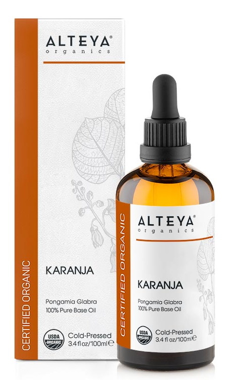 De Biologische Karanja Olie van Alteya Organics is een koudgeperste, biologische olie, afkomstig van de zaden van de Pongamia Glabra boom. De olie heeft een bleekgele tot gele kleur en wordt ook als natuurlijke insecticide gebruikt in de landbouw. Karanja olie is rijk aan omega-9 vetzuren en flavonoïden. Karanja is een neefje van neem, maar heeft een mildere geur. De Biologische Karanja Olie is geschikt voor de verzorging van huid en haar.