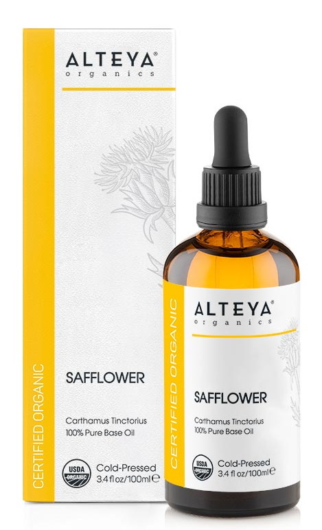 De Biologische Saffloer Olie van Alteya Organics is een koudgeperste, biologische olie, afkomstig van de zaden van de Carthamus Tinctorius plant. Saffloerolie heeft de hoogste concentratie aan meervoudig onverzadigde vetzuren van alle plantenoliën. Ideaal voor de verzorging van de droge en onzuivere (acne) huid. Heeft een niet-vette textuur en trekt snel in de huid zonder de poriën te verstoppen. De Biologische Saffloer Olie is geschikt voor de verzorging van huid en haar.