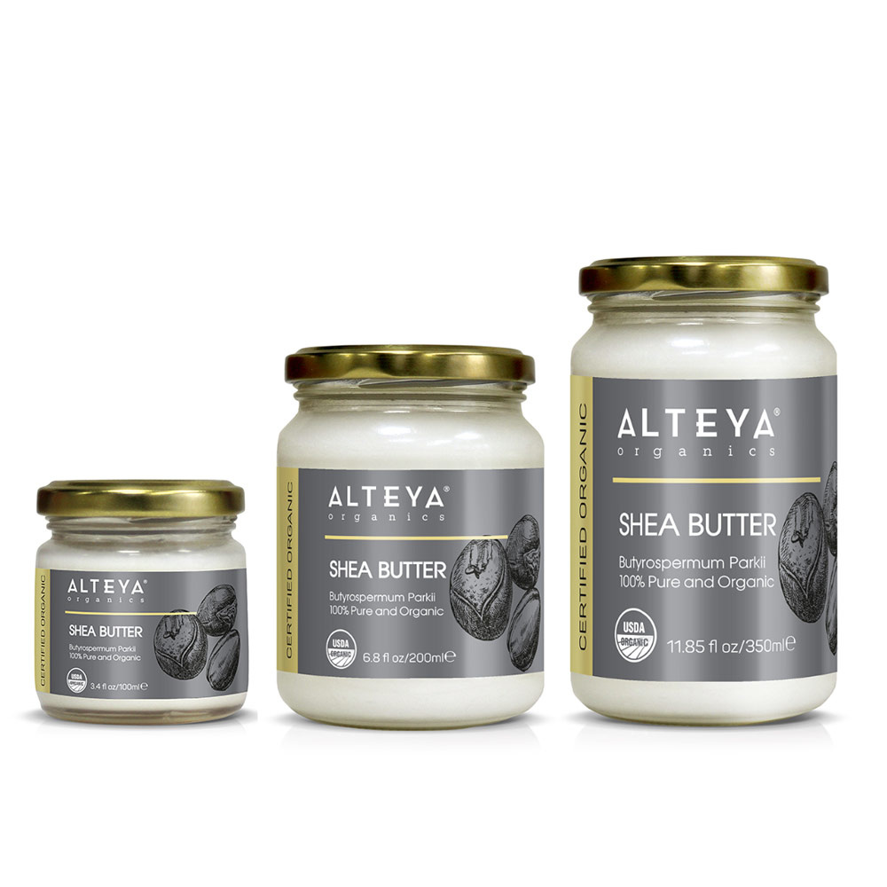 De Biologische Shea Butter van Alteya Organics is een biologische boter, afkomstig van de de noten van de Butyrospermum Parkii boom. Het wordt al eeuwenlang gebruikt voor een gezonde, mooie huid. Sheabutter is van nature rijk aan vitamine A en E, essentiële vetzuren en andere vitaminen en mineralen. De sheabutter van Alteya is geraffineerd (fysiek, zonder chemicaliën) en ontgeurt, waardoor het geschikter is om cosmetische producten mee te maken. De Biologische Shea Butter is geschikt voor de verzorging van huid en haar.