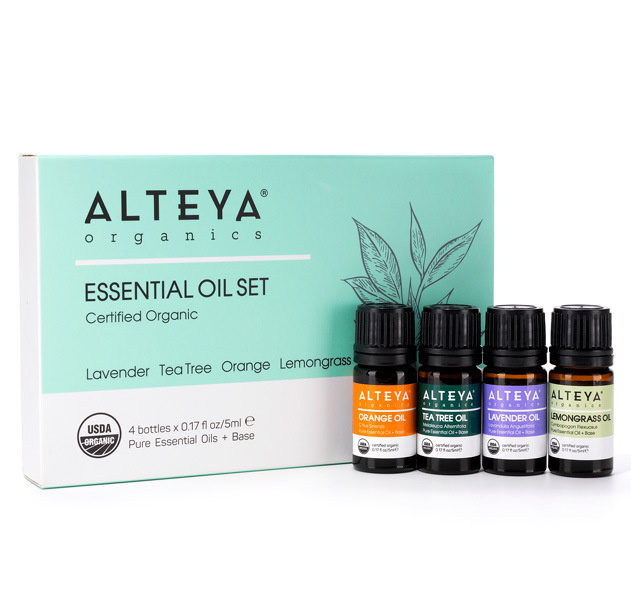Het Essential Oil Set Pure Gratitude van Alteya Organics brengt een vier biologische etherische oliën bij elkaar die voor gevoelens van plezier en comfort zorgen. De heerlijke aroma's helpen mentaal tot rust te komen. Het set bevat een flesje lavendelolie, een flesje tea tree, een flesje sinaasappel en een flesje citroengras (lemongrass) olie. De etherische oliën zijn toegevoegd aan een basis van abrikozenpitolie zodat de oliën direct op de huid aangebracht kunnen worden.