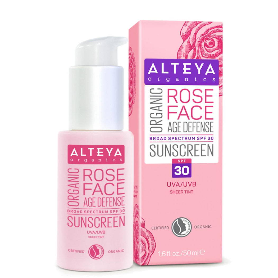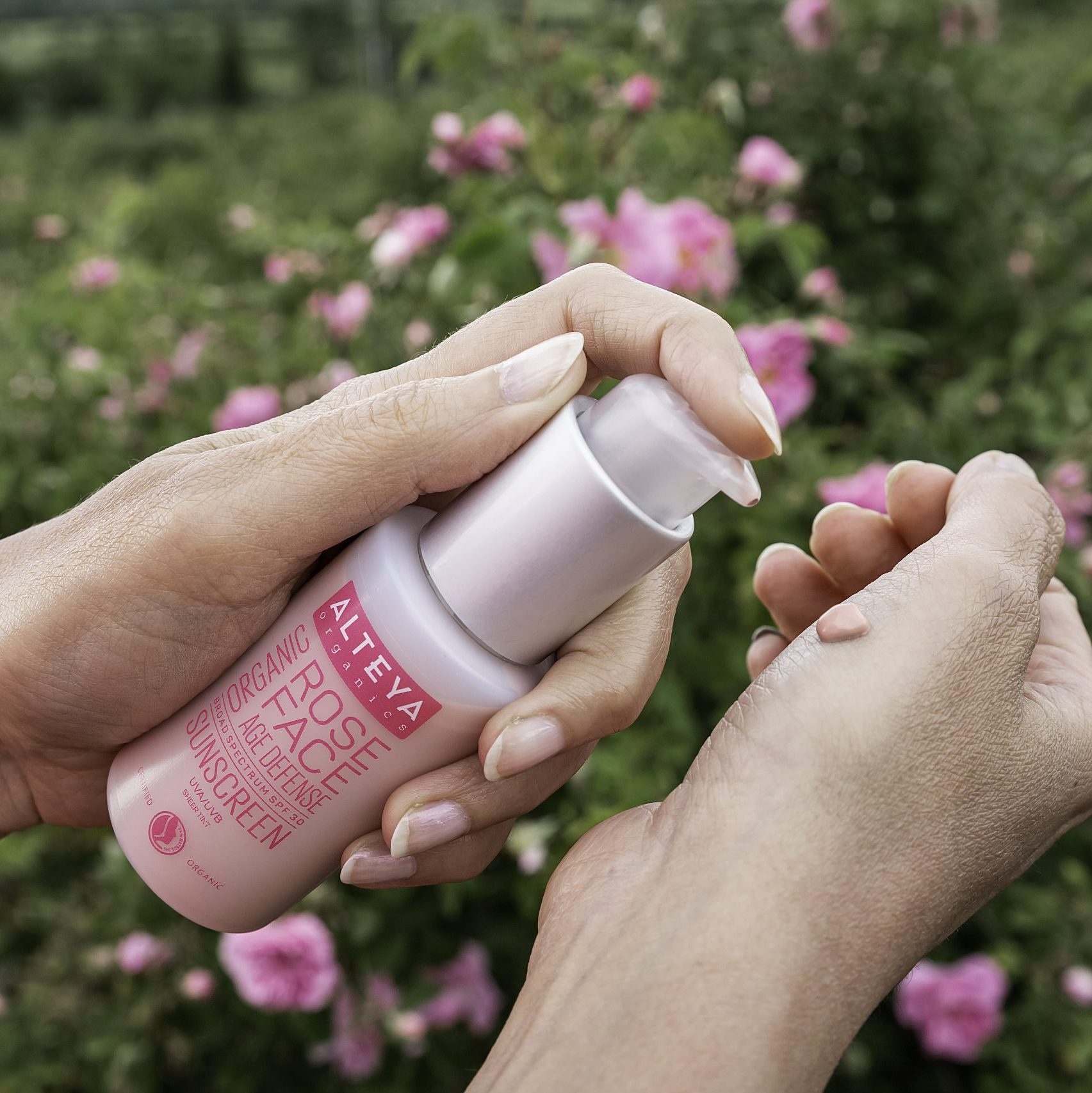De Organic Rose Face Sunscreen SPF30 van Alteya Organics is een 100% natuurlijke en gecertificeerd biologische zonnebrandcrème voor het gezicht. De crème biedt een betrouwbare en hoge UVA/UVB-bescherming. Verzorgt met natuurlijke oliën en extracten en hydrateert en verjongt de huid. Verrijkt met thermisch water, sheabutter en oliën van Bulgaarse roos, kokos, jojoba, avocado, macadamia, kamille en lavendel. De fijne textuur laat zich gemakkelijk aanbrengen. Dankzij de getinte receptuur laat de crème geen witte waas achter. Met een heerlijke geur van Bulgaarse Damascus roos. De Organic Rose Face Sunscreen SPF30 is vegan.