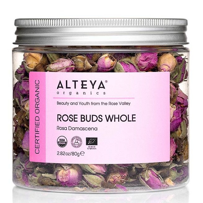 De Organic Whole Rose Buds van Alteya Organics zijn biologische verse rozenknopjes. De Bulgaarse roos wordt al eeuwen gewaardeerd om haar schoonheid en betoverende geur. Deze biologische rozenknopjes hebben een heerlijk, opwekkend en zoet aroma. De knopjes worden met de hand geplukt op de rozenboerderij van Alteya, in het hart van de Bulgaarse rozenvallei. De jonge rozenknopjes zijn geoogst voor en tijdens de zonsopkomst om het volle aroma van de bloem te behouden. Als thee zorgen de rozenknopjes voor een opgewekt humeur, voor het ontgiften van het lichaam en voor een stralende huid. De Organic Whole Rose Buds is vrij van toevoegingen.