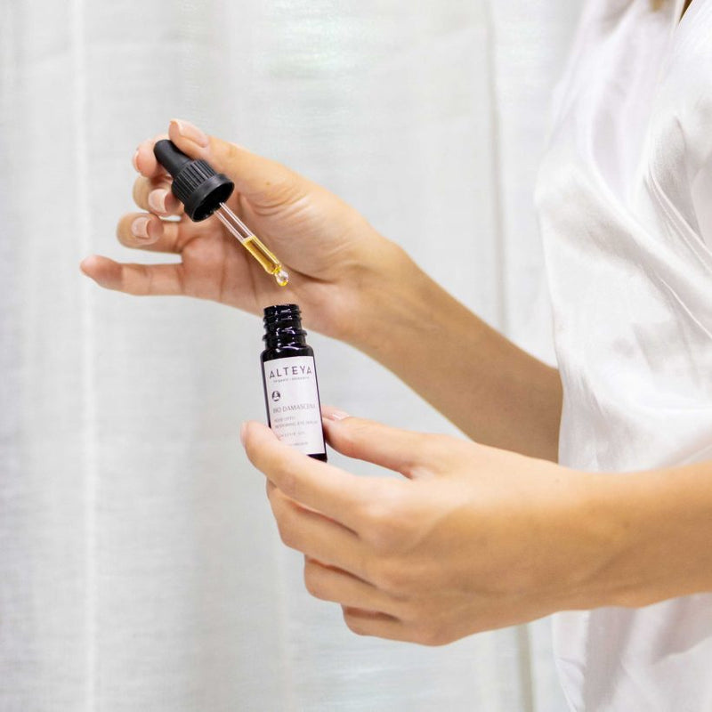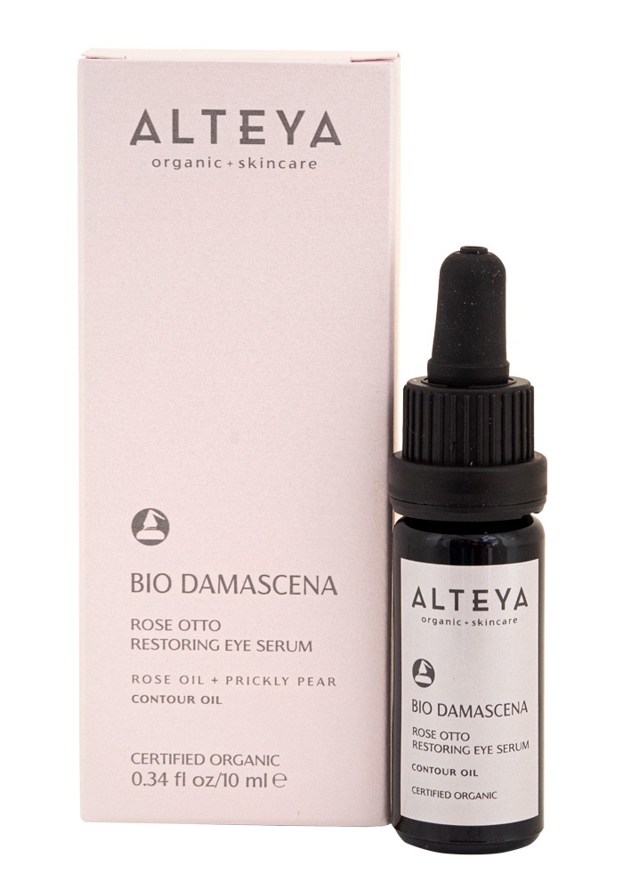 Het Bio Damascena Organic Restoring Eye Serum van Alteya Organics is een biologisch oogserum. Het helpt vermoeide ogen direct te revitaliseren en verhelderen, vermindert fijne lijntjes en rimpels en beschermt de tere huid rond de ogen. Het serum is rijk aan antioxidanten en voedingsstoffen en vertraagt het huidverouderingsproces. Het stimuleert de collageenproductie, hydrateert intensief en verbetert de huidelasticiteit en -stevigheid. Het Bio Damascena™– Skin Reviving complex is een combinatie van biologische essentiële oliën en extracten gecombineerd met een biologische Bulgaarse rozenolie van zeer hoge kwaliteit. Het verbetert de weerstand van de huid, vertraagt het verouderingsproces, verbetert de helderheid, verjongt en verfijnt de textuur. Bevat o.a. biologische macadamia olie, biologische zoete amandelolie, biologische hennepzaadolie, biologisch calendula extract, biologische rozenbottelolie en biologische bernagie olie. Het Bio Damascena Organic Restoring Eye Serum is vegan.