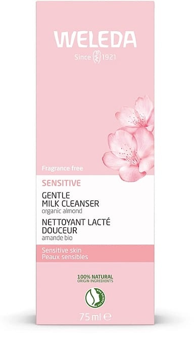 Weleda Sensitive Verzachtende Reinigingsmelk met amandelolie is een rijke, parfumvrije reinigingsmelk die de gevoelige huid mild reinigt. De reiniging herstelt de natuurlijke vochtbalans van de huid waardoor deze zacht en fris aanvoelt.
