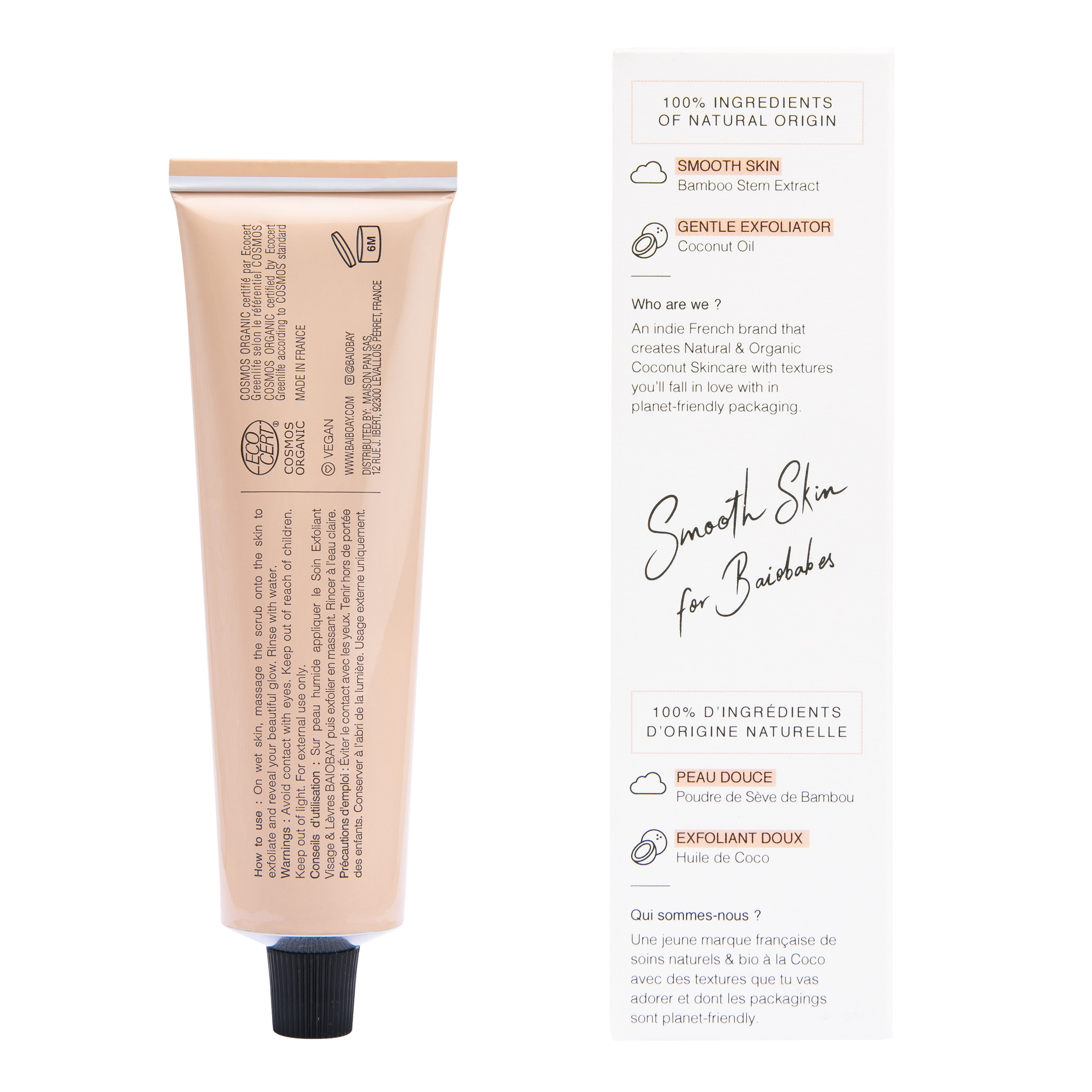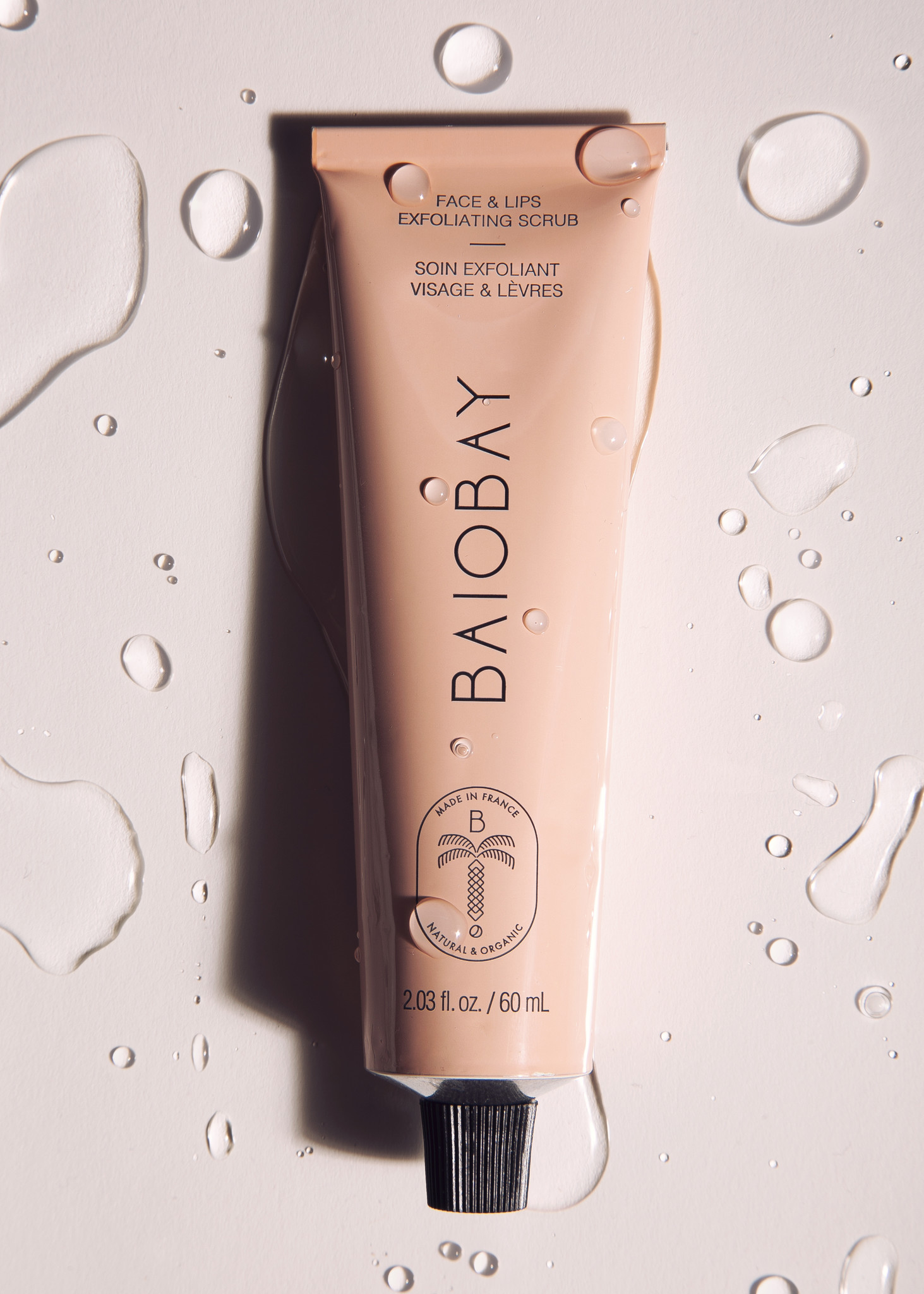 De Face & Lips Exfoliating Scrub van BAIOBAY is een natuurlijke scrub voor gezicht en lippen. De scrub exfolieert dode huidcellen van de oppervlakte van de huid voor een zachte, gladde en stralende huid. Door de huid te exfoliëren kan de huid andere huidverzorgingsproducten beter opnemen. Het exfoliëren van de lippen zorgt voor zachte lippen en is ideaal voor het aanbrengen van lipstick. De combinatie van kokosolie en bamboe steelextract zorgt voor een zachte exfoliatie van de huid. Deze exfoliërende behandeling verandert in een melk zodra het in contact komt met water en kan zowel voor het gezicht als de lippen gebruikt worden. De Face & Lips Exfoliating Scrub is 100% natuurlijk en vegan.