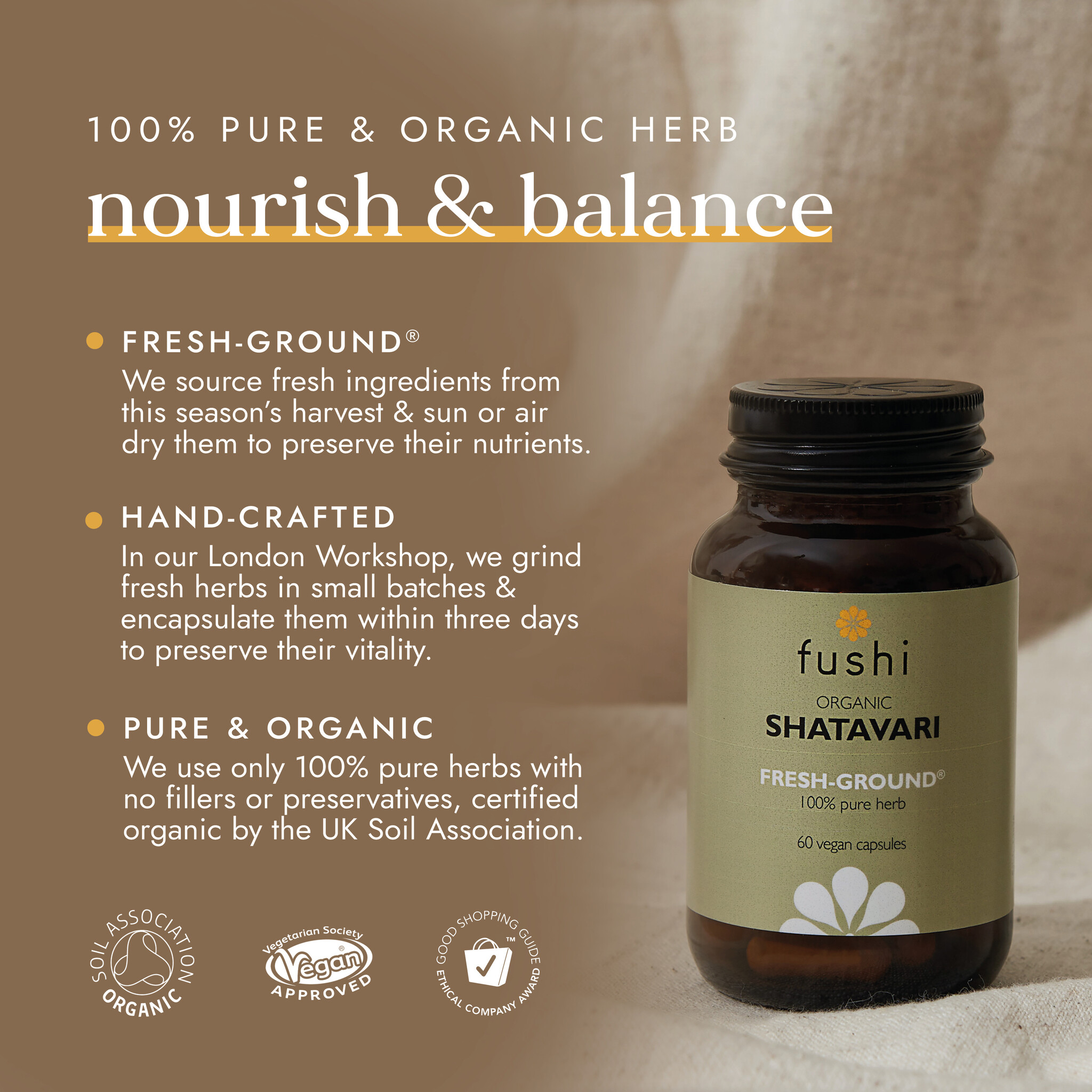 Fushi’s natuurlijke producten worden gemaakt van de hoogste kwaliteit biodynamisch, biologisch en wild gegroeide kruiden, verkregen met behulp van duurzame bronnen. Bij Fushi zijn we ons bewust van onze verantwoordelijkheid om goed te zorgen voor onze planeet en eerlijke informatie te delen met onze klanten.