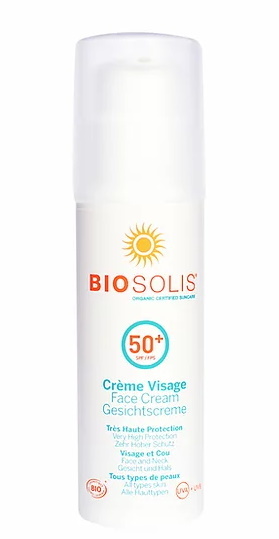 De Face Cream SPF50+ van Biosolis is een natuurlijke zonnebrandcrème die de gezichtshuid beschermt en verzorgt. Minerale filters en karanja olie zorgen voor een effectieve, zeer hoge bescherming voor UVA- en UVB-stralen. De hoge concentratie biologische aloë vera gel hydrateert, werkt ontstekingsremmend en stimuleert het huidherstel en de huidregeneratie. Biologische karanja olie werkt geneeskrachtig, verhelderend en antibacterieel. De crème voelt prettig aan op de huid, is gemakkelijk aan te brengen en werkt verzorgend en verkoelend. Watervast en zeer subtiel geparfumeerd. De crème is niet getint en laat desondanks geen tot bijna geen witte waas achter. De Face Cream SPF50+ is geschikt voor alle huidtypes. Vegan en vrij van nanodeeltjes.