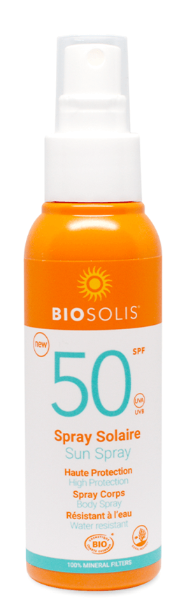 De Sun Spray SPF50 van Biosolis is een natuurlijke zonnebrandspray die je huid een zeer hoge bescherming biedt. De lichaamsspray biedt een breedspectrum bescherming tegen UVA- en UVB-straling dankzij minerale filters. Verrijkt met sesamolie dat een hoog gehalte aan fytosterolen bevat die de huidbarrière regenereren. Bovendien voedt en hydrateert het de huid en verzacht het irritaties. De spray heeft een smeuige en lichte textuur waardoor het gemakkelijk uitgesmeerd kan worden. De formule is droog en plakt niet op de huid. De Sun Spray SPF50 is vegan.