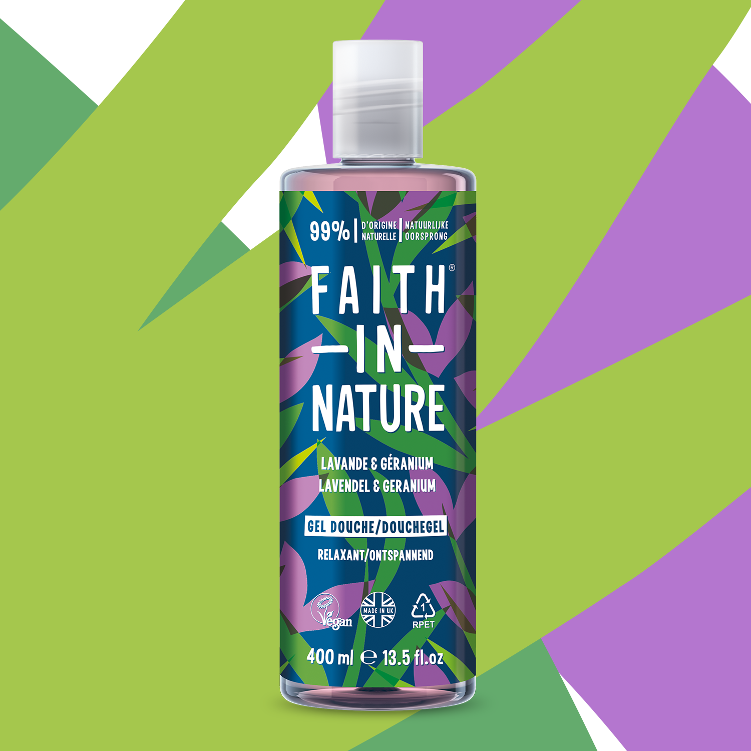 Faith in Nature Lavendel & Geranium douchegel is een kalmerende en relaxerende douchegel die je even doet ontspannen onder de douche of in bad. Dit product maakt deel uit van Faith in Nature’s award winning reeks. Er werd gebruikt gemaakt van Faith in Nature’s eigen aromatherapie oliën die speciaal ontwikkeld zijn om stress tegen te gaan en de huid diepgaand te voeden. Dit steeds met respect voor de natuur. Neem dus gauw een heerlijk ontspannend bad en geniet van het kalmerende effect van pure lavendel en geranium, zowel op je huid als op je zintuigen.