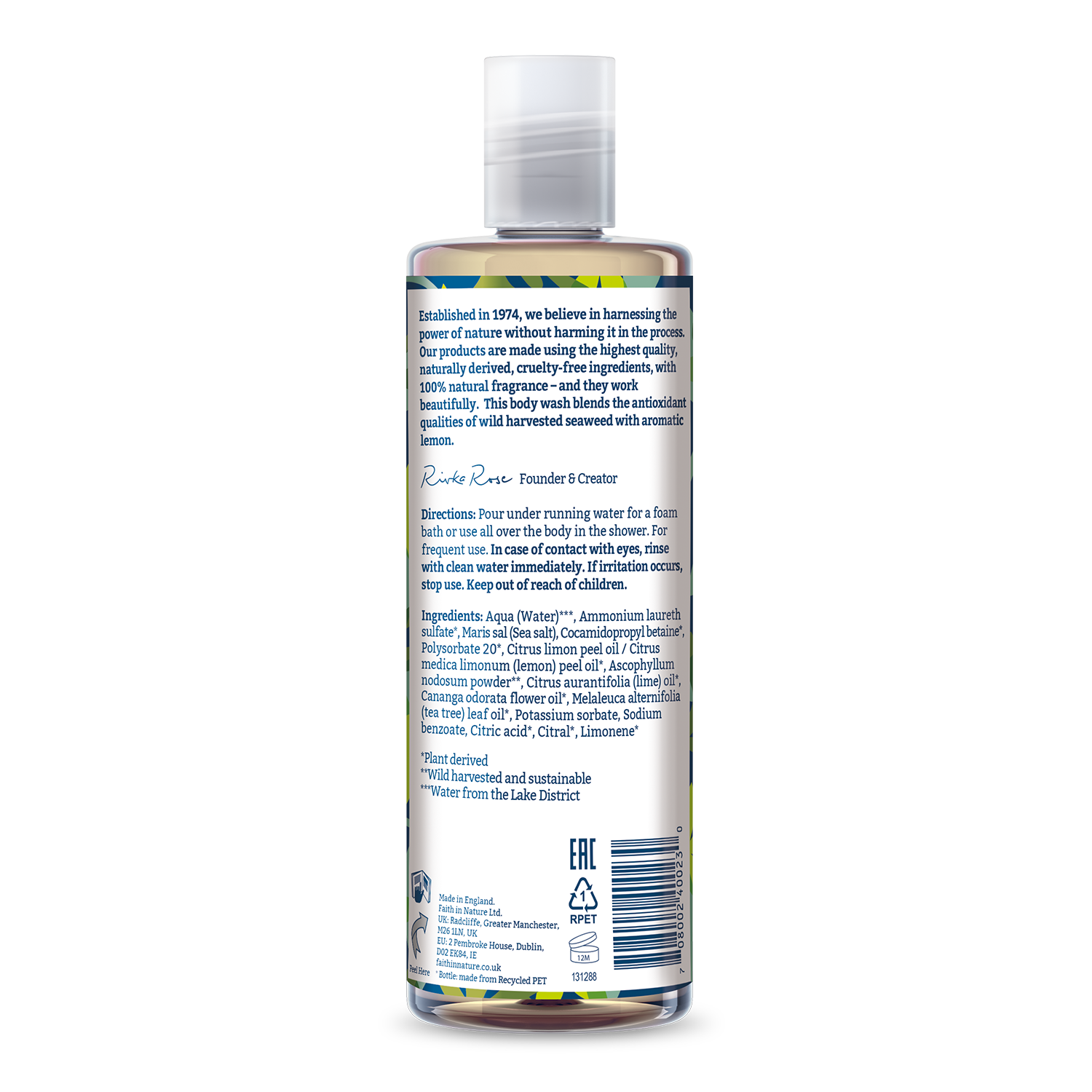 Faith in Nature Zeewier & citrus bad- en douchegel is rijk aan mineralen en antioxidanten. Schadelijke vrije radicalen worden efficiënt bestreden en je huid voelt weer heerlijk zacht en gezond aan. Het zeewier is afkomstig uit diepe onvervuilde zeeën en geeft je een ware relax therapie in je eigen badkuip.
