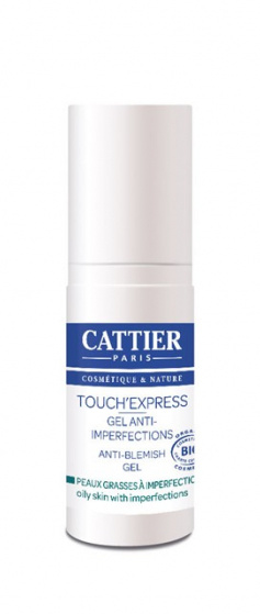 De Anti-Onzuiverheden Gel Touch'Express van Cattier Paris is een biologische gel die onzuiverheden snel neutraliseert en de huid zuivert. Werkt direct na het aanbrengen door de geblokkeerde poriën te zuiveren en puistjes uit te drogen. Biologische tea tree olie werkt antibacterieel, samentrekkend en verzachtend. Biologische rozemarijn olie werkt verzorgend, zuiverend en kalmeert irritatie. Bevat verder o.a. biologische zonnebloemolie, jojoba ester en biologische pepermuntolie. De Anti-Onzuiverheden Gel Touch'Express is ontwikkeld voor de vette huid met onzuiverheden (acne, puistjes).