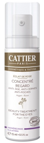 De Oogcontourcrème Éclat de Rose is een schoonheidsbehandeling voor de ogen. Argan proteïnen gaan rimpels tegen, hydrateren intensief en zorgen voor een elastische, stralende huid. Een cocktail van actieve ingrediënten (zwarte tarwe was en algenextracten) hydrateert en vermindert wallen onder de ogen. Rode algen extract activeert de bloedcirculatie. Franse lavendel extract gaat expressie rimpels tegen dankzij de gladmakende eigenschappen. Biologisch rozenextract verzacht en verfrist de huid. De crème tonifieert en vermindert wallen en fijne lijntjes.