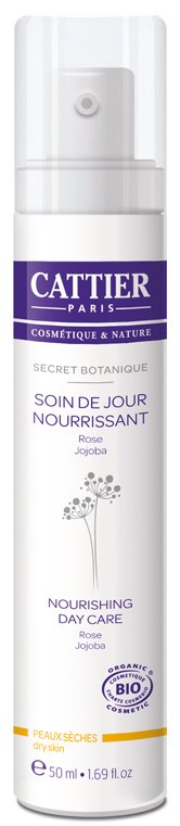 De geurvrije Voedende Dagcrème Secret Botanique van Cattier Paris is ideaal voor de dagelijkse hydratatie van de droge en gevoelige huid. Fosfolipiden uit zonnebloem hydrateren en beschermen de huid. Plantaardige squalaan beschermt voor dehydratie en invloeden van buitenaf en zorgt voor een soepele, zachte huid. De gepatenteerde technologie Hydracire S® (wassen van jojoba, mimosa en zonnebloem) zorgt voor een prettig huidgevoel, hydrateert de epidermis en zorgt voor een egale teint. Biologisch roos extract kalmeert, hydrateert, verfrist, tonifieert en verstevigt de huid. Biologische jojoba olie regenereert, beschermt en brengt de huid in evenwicht. Biologische kokosboter hydrateert en werkt antiseptisch. Calendula extract kalmeert en werkt ontstekingsremmend.