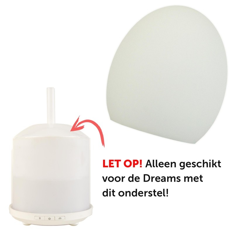Melkglazen kap voor de Aromalogica Dreams 2.0 aromaverdamper van Chi. Als je kap van je Aromalogica Dreams 2.0 gesneuveld is, dan is deze kap te bestellen als vervanging.Heb je een onderstel zonder tuitje op de deksel? Dan past deze kap NIET.