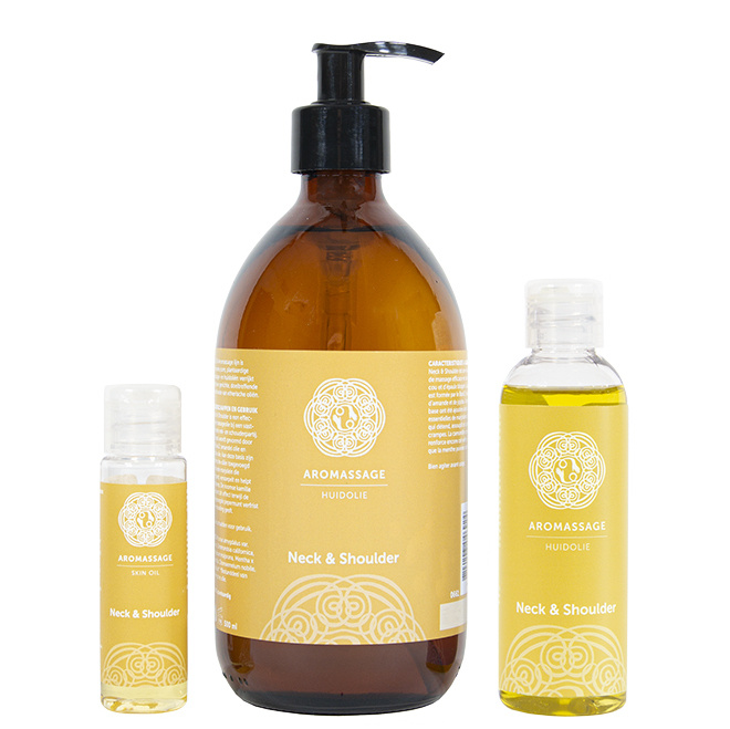 De Aromassage Neck & Shoulder van Chi is een 100% natuurlijke massage olie die dankzij de toegevoegde etherische oliën een positieve invloed heeft op stijve nek- en schouderspieren. Ook heeft het een gusntige invloed bij hoofd, nek- en schouderklachten. De basis van de Aromassage Neck & Shoulder bestaat uit koudgeperste amandelolie en jojoba olie. Amandelolie is zeer geschikt voor massages door de vette structuur en jojoba olie zorgt voor de beste huidverzorging. Jojoba olie geeft een beschermend laagje op de huid waardoor het vocht in de huid blijft en de huid goed beschermd wordt voor weersinvloeden. Aan deze basis zijn essentiële oliën toegevoegd van zoete marjolein, roomse kamille en pepermunt. De olie is hierdoor bij uitstek geschikt voor het masseren van spieren. Vooral vastzittende nek- en schouderspieren worden met deze aromassage losgemaakt in combinatie met een ontspannende massage. Ook heeft deze olie een verzachtende invloed op het hoofd. Alleen aanbrengen en inwrijven heeft al een verbluffend resultaat. De Aromassage lijn van Chi is een unieke en geheel natuurlijke massagelijn en huidverzorgingslijn in één. Met als basis de koudgeperste amandel- en jojoba olie is een lijn van tien heerlijke oliën ontwikkeld die de huid verzorgen of basis kunnen dienen voor een lichaams- en gezichtsmassage. Maak een persoonlijke massageolie met behulp van Aromassage Basic2 of kies voor één van de kant-en-klare massageoliën die verrijkt zijn met een doeltreffende combinatie van etherische oliën.