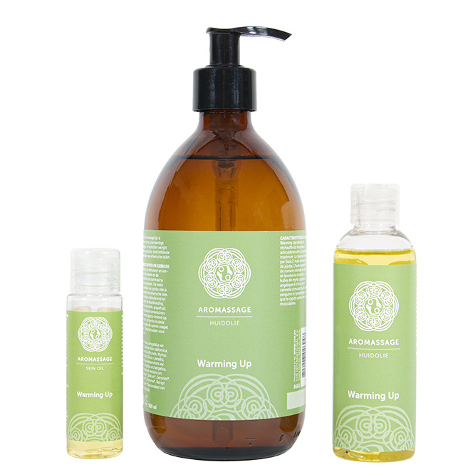 De Aromassage Warming Up van Chi is een 100% natuurlijke massage olie die de spieren verwarmt en verzorgt. Deze massageolie stimuleert de spieren en de gewrichten om op te warmen en geeft de spieren extra kracht. Amandelolie is zeer geschikt voor massages door de vette structuur en jojoba olie zorgt voor de beste huidverzorging. Jojoba olie geeft een beschermend laagje op de huid waardoor het vocht in de huid blijft en de huid goed beschermd wordt voor weersinvloeden. Aan de basis van amandelolie en jojoba olie zijn effectieve essentiële oliën toegevoegd. Rozemarijnolie stimuleert en heeft een positieve invloed op de doorbloeding. Oliën van mirte, grapefruit, engelwortel en kaneelschors stimuleren de bloedcirculatie. Cipresolie zorgt voor soepele spieren. Aromassage Warming Up heeft een vitaliserend en stimulerend effect op de spieren, maar geeft ook de geest een oppepper. De Aromassage lijn van Chi is een unieke en geheel natuurlijke massagelijn en huidverzorgingslijn in één. Met als basis de koudgeperste amandel- en jojoba olie is een lijn van tien heerlijke oliën ontwikkeld die de huid verzorgen of basis kunnen dienen voor een lichaams- en gezichtsmassage. Maak een persoonlijke massageolie met behulp van Aromassage Basic2 of kies voor één van de kant-en-klare massageoliën die verrijkt zijn met een doeltreffende combinatie van etherische oliën.