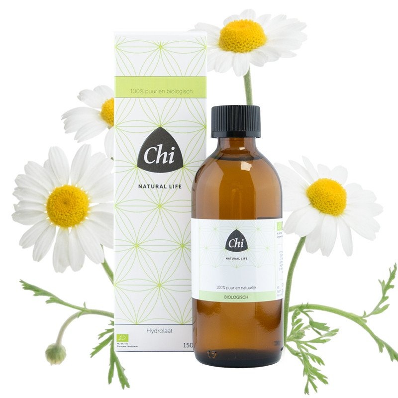 Het Biologisch Kamille Hydrolaat van Chi is 100% puur en biologisch bloemenwater uit de kleine witte bloemetjes van de Roomse kamille. Kamillwater is licht samentrekkend en verzacht en kalmeert de huid. Ideaal bij een gevoelige of ontstoken huid, bij puistjes en in de babyverzorging om o.a. de luieruitslag te verzachten. Kamillewater heeft een heerlijke zoete, enigszins honingachtige geur. Het Biologisch Kamille Hydrolaat is ook geschikt voor inwendig gebruik.