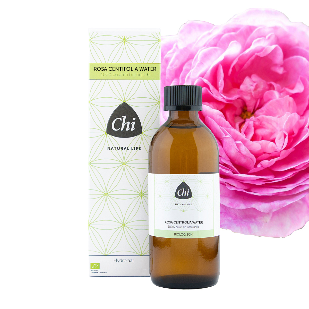 Het Biologisch Rozenwater Rosa Centifolia van Chi is een 100% puur en biologisch bloemenwater van de versgeplukte bloemenblaadjes van de Centfolia roos, ook wel boerenroos of Provenceroos genoemd. Rozenwater verkoelt, ontspant en verfrist de huid. Het werkt samentrekkend, tonifiërend, verzachtend en zuiverend. Het hydrateert en stimuleert de celvernieuwing. Het is zeer zacht en daarom geschikt voor alle huidtypen en voor de babyverzorging. Rozenwater kan ook gebruikt worden om een ruimte mee te begeuren en bevochtigen en kan gebruikt worden om kleding en textiel te verfrissen. Het Biologisch Rozenwater Rosa Centifolia van Chi is ook geschikt voor inwendig gebruik.