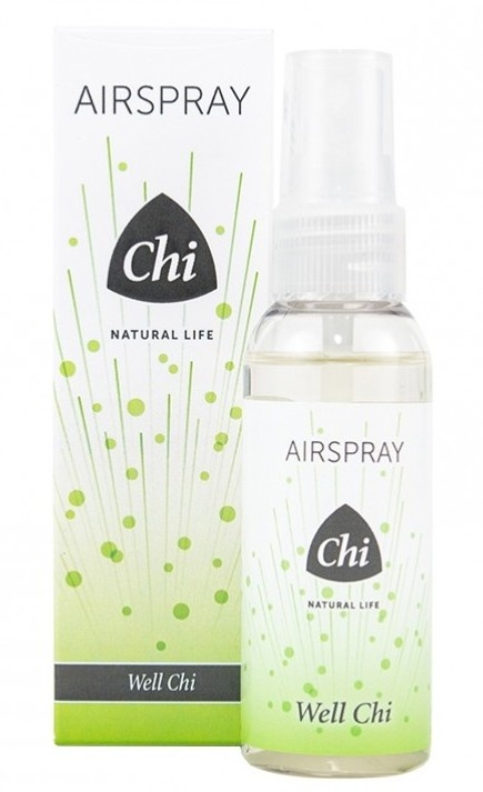 De Well Chi Airspray van Chi is een 100% natuurlijke roomspray die muffe, onaangename luchtjes in huis vervangt door een frisse, aangename geur. De airspray bestaat uit een basis van biologische alcohol en een mix van zuivere etherische oliën die de kwaliteit van de binnenlucht verbeteren. Essentiële grove den olie is een effectieve microbendoder in de lucht, vergemakkelijkt de ademhaling en maakt de luchtwegen schoon. Essentiële ho-hout olie heeft een warme, fris-zoete roosachtige geur, heeft een zuiverende werking en stimuleert het immuunsysteem. Essentiële akkermunt olie is het sterke zusje van pepermunt: het verfrist en zuivert iedere ruimte. Essentiële geranium olie verdrijft vervelende geurtjes en helpt bij het loslaten van spanningen, ergernissen en stress.
