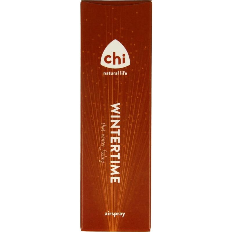 De Wintertime Airspray van Chi is een 100% natuurlijke roomspray voor een warme, ontspannen geur in huis. De geur geeft een gevoel van geborgenheid en is prettig tijdens de donkere wintermaanden. Maar ook in tijden van stress en rusteloosheid geeft Wintertime je het gevoel thuis te zijn in een prettige omgeving. De airspray is zodanig rustgevend dat je er prima op kan slapen. De Wintertime Airspray bestaat uit een basis van biologische alcohol en zuivere essentiële oliën van sinaasappel, grove den, ho-hout, kaneel en wierook.