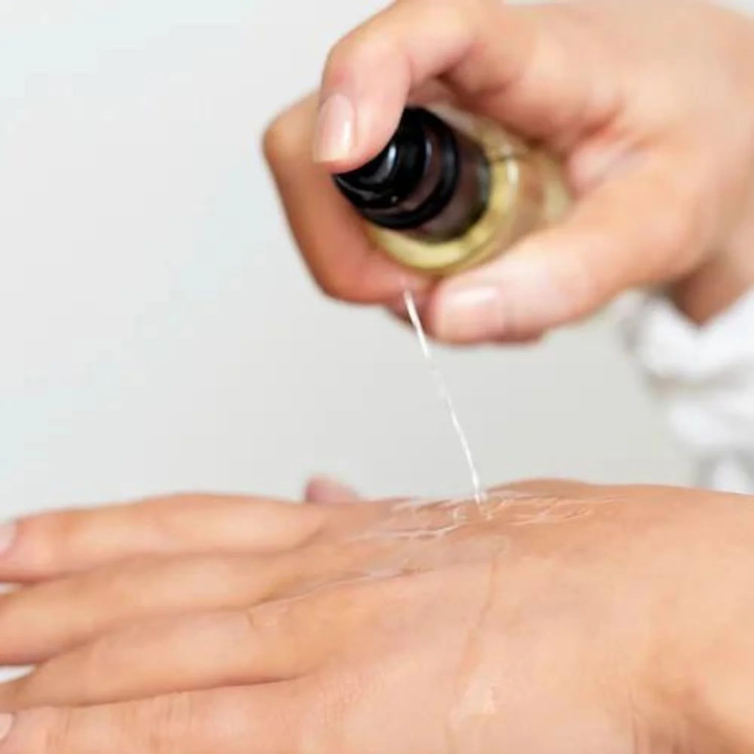 Gebruik de olie onder de douche in plaats van zeep. 1) Maak de huid nat. 2) Breng de olie aan tussen de binnenste en buitenste schaamlippen. 3) Spoel af.
