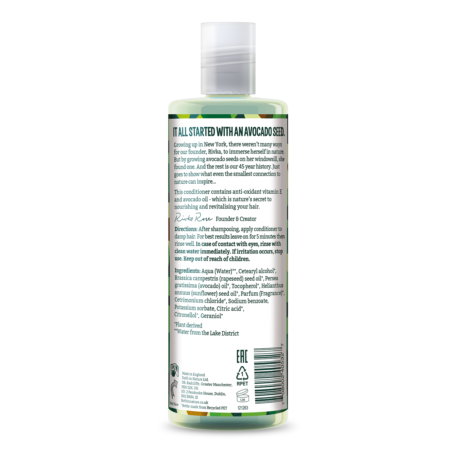 Ingrediënten: Aqua (Water)** Cetearyl alcohol* Brassica campestris (rapeseed) seed oil* Persea gratissima (avocado) oil * Tocopherol* Helianthus annuus (sunflower) seed oil* Parfum (Fragrance)*, Cetrimonium chloride* Sodium benzoate Potassium sorbate Citric acid* Citronellol* Geraniol*.