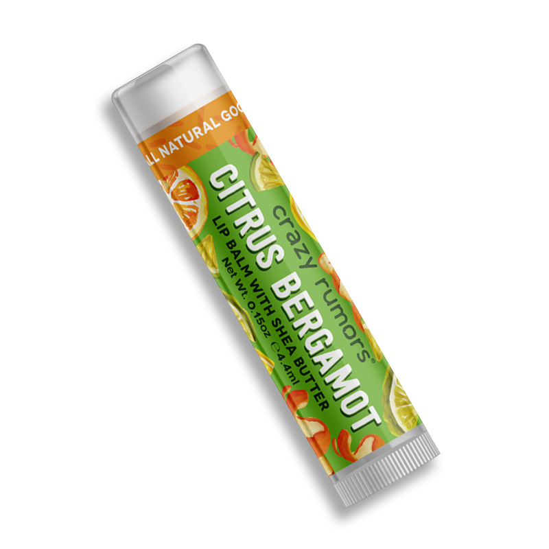 De Lip Balm Citrus Bergamot van Crazy Rumors is een 100% natuurlijke en vegan lippenbalsem met gecertificeerd biologische ingrediënten. Zorgt voor zachte en gehydrateerde lippen, beschermt voor weersinvloeden en stimuleert het huidherstel. Bevat biologische sheabutter, macadamia olie, biologische jojoba olie, biologische extra virgin olijfolie, candelilla was, biologisch carnauba was en vitamine E. Met een heerlijke natuurlijke smaak van citroen, limoen, sinaasappel en grapefruit. Licht gezoet met een vleugje natuurlijke stevia.