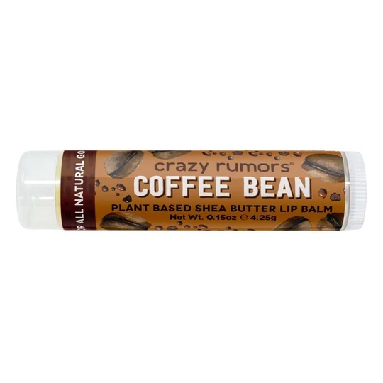 De Lip Balm Coffee Bean van Crazy Rumors is 100% natuurlijk en vegan met gecertificeerd biologische ingrediënten. Zorgt voor zachte en gehydrateerde lippen met biologische sheabutter, macadamia olie, jojoba olie, extra virgin olijfolie, candelilla was, biologische carnauba was en vitamine E. Met een heerlijke smaak van robuuste, versgemalen koffie: geïnspireerd door barista's. Licht gezoet met een vleugje natuurlijke stevia.