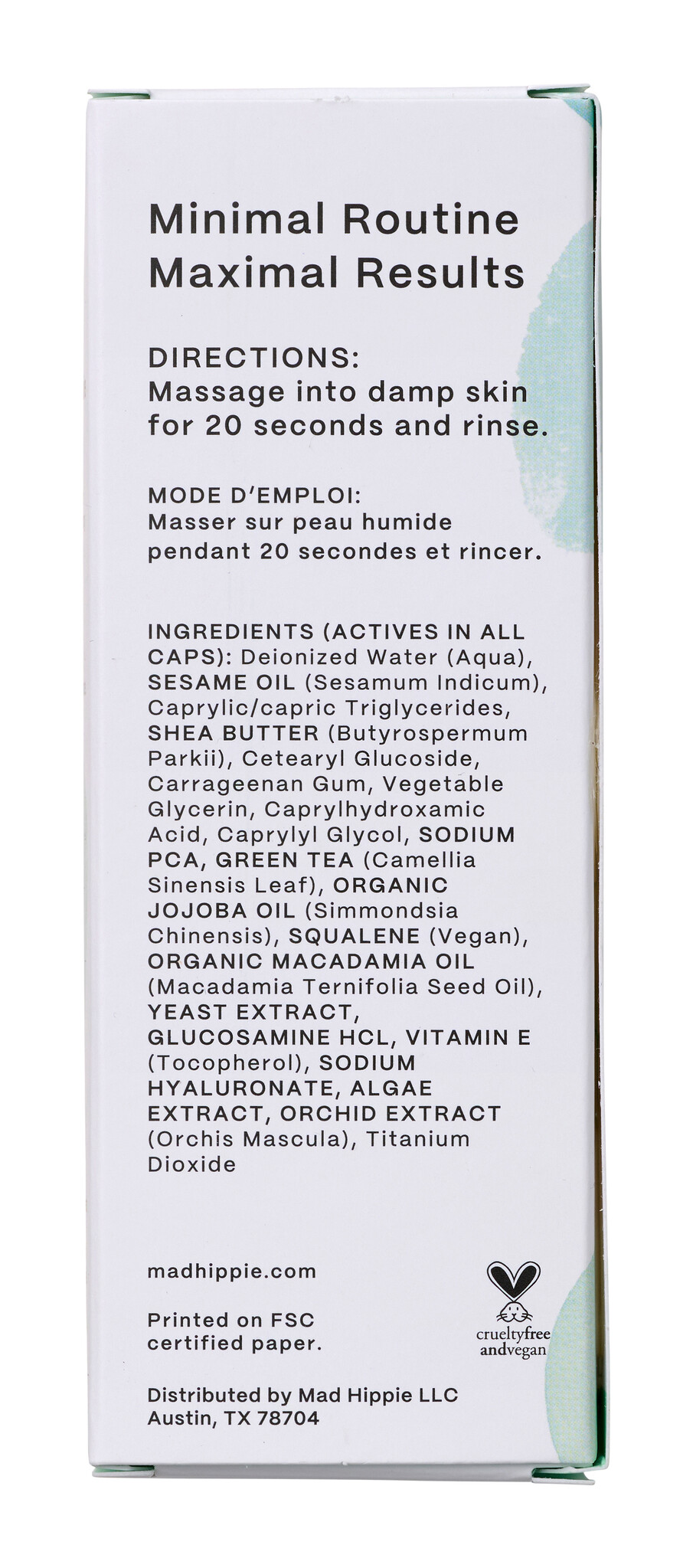 Gebruiksaanwijzing: Masseer 20 seconden in de vochtige huid en spoel af met lauwwarm water. Dep de huid zachtjes droog en gebruik vervolgens een serum en moisturizer. Kan 's ochtends of 's avonds worden gebruikt.