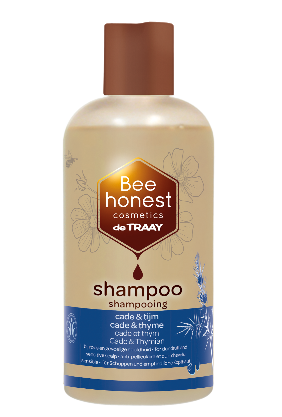 De Shampoo Cade & Tijm van Bee Honest Cosmetics combineert een milde reiniging met natuurlijke actieve ingrediënten. Milde tensiden zorgen voor een zachte reiniging zonder uit te drogen of te irriteren. Tarweproteïnen repareren beschadigd haar en geven het haar glans en volume. Oliën van cade en tijm herstellen het evenwicht van de hoofdhuid, werkten zuiverend en bestrijden hoofdroos. De Shampoo Cade & Tijm is geschikt voor normaal haar en bij hoofdroos en een gevoelige hoofhuid.