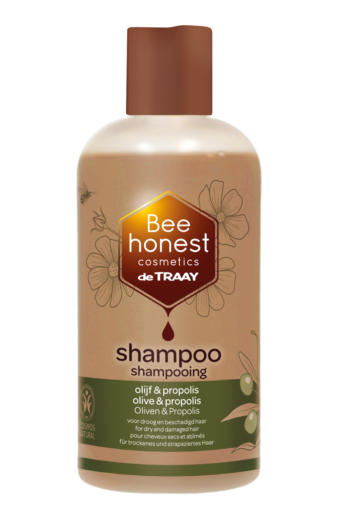 De Shampoo Olijf & Propolis van Bee Honest Cosmetics combineert een milde reiniging met natuurlijke actieve ingrediënten. Milde tensiden zorgen voor een zachte reiniging van haar en hoofdhuid. Biologische honing van De Traay zorgt voor een gezonde hoofdhuid en voedt, hydrateert en verzacht het haar. Propolis zorgt voor een gezonde hoofdhuid. Biologische olijfolie en olijfblad extract werken verzorgend. De Shampoo Olijf & Propolis heeft een opwekkende geur van citroen en kamfer en is speciaal ontwikkeld voor droog en beschadigd haar.