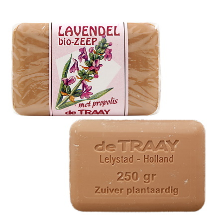 De Biologische Zeep Lavendel met Propolis van De Traay is een milde, verzorgende zeep van biologische kwaliteit. Milde tensiden zorgen voor een zachte reiniging van de huid. Sheabutter, biologische honing en zonnebloemolie voeden, verzachten en hydrateren en voorkomen dat de huid droog wordt. Propolis werkt antibacterieel en kalmeert roodheid en irritaties. Lavendel geeft de zeep een rustgevende geur. De Biologische Zeep Lavendel met Propolis is in het bijzonder geschikt voor de vette en onzuivere huid.