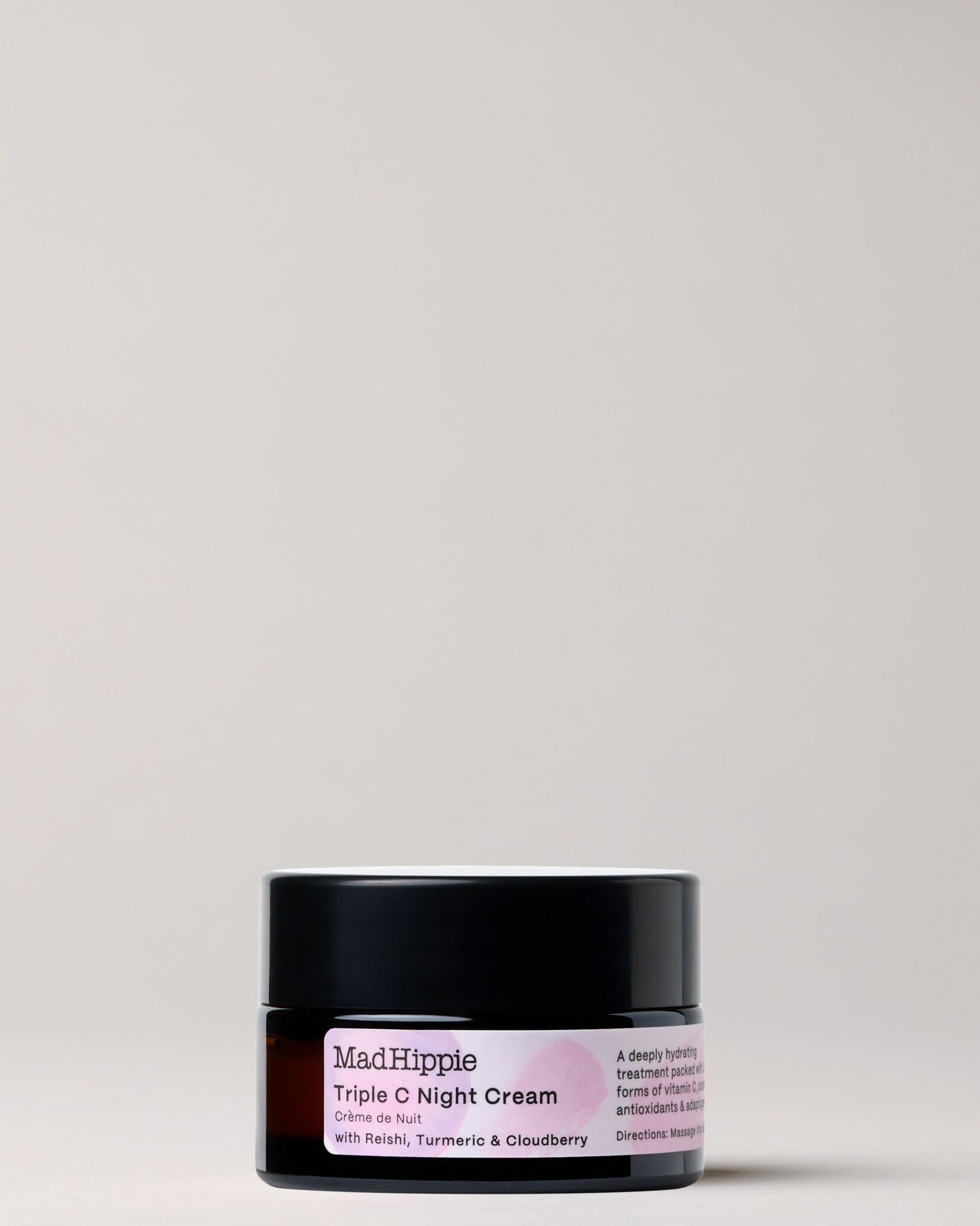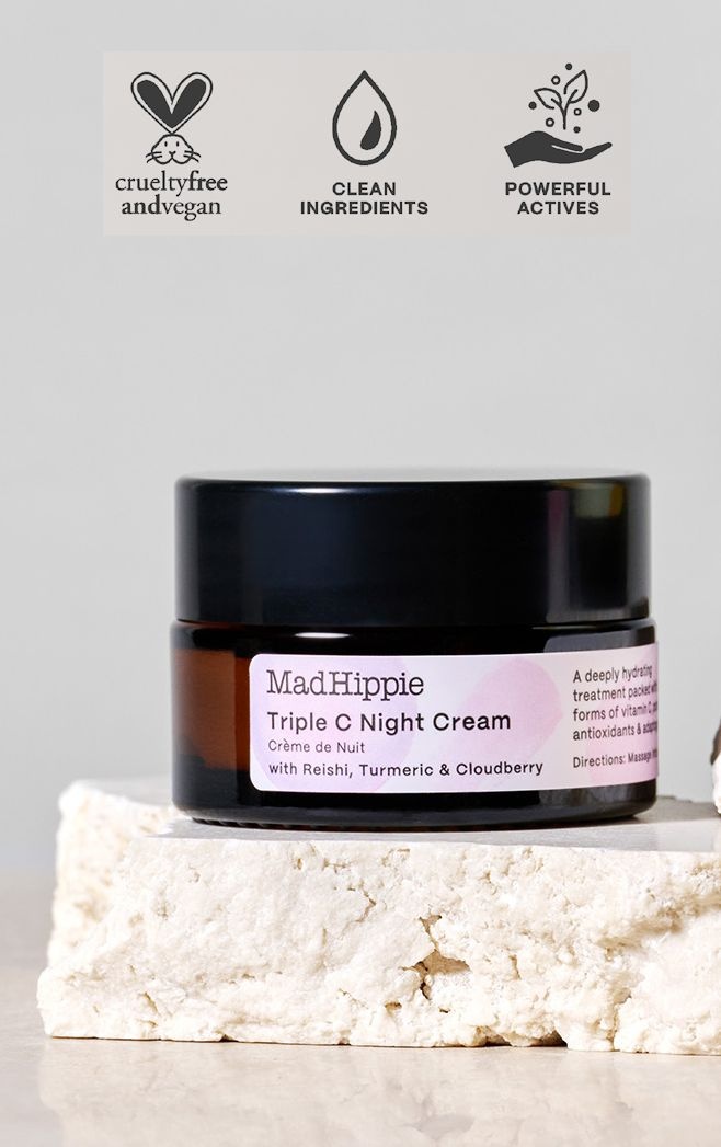 Kan ik dit samen met de gezichtscrème gebruiken? Als je ook Mad Hippie gezichtscrème gebruikt, zouden we afwisselend 's nachts en 's nachts gebruiken, of bijvoorbeeld overdag de gezichtscrème en 's nachts de Triple C nachtcrème. Elk product heeft verschillende werkstoffen die de huid ten goede komen.