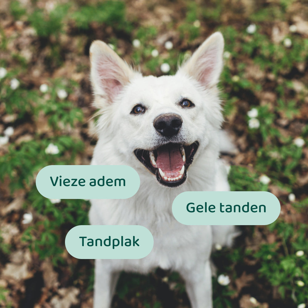 Samen zorgen deze stoffen voor een dagelijkse reiniging van de mond van je hond en verminderen ze de kans op tandplak.