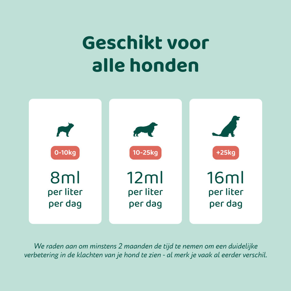 Voeg de aanbevolen hoeveelheid eenvoudig toe aan het drinkwater van je hond: