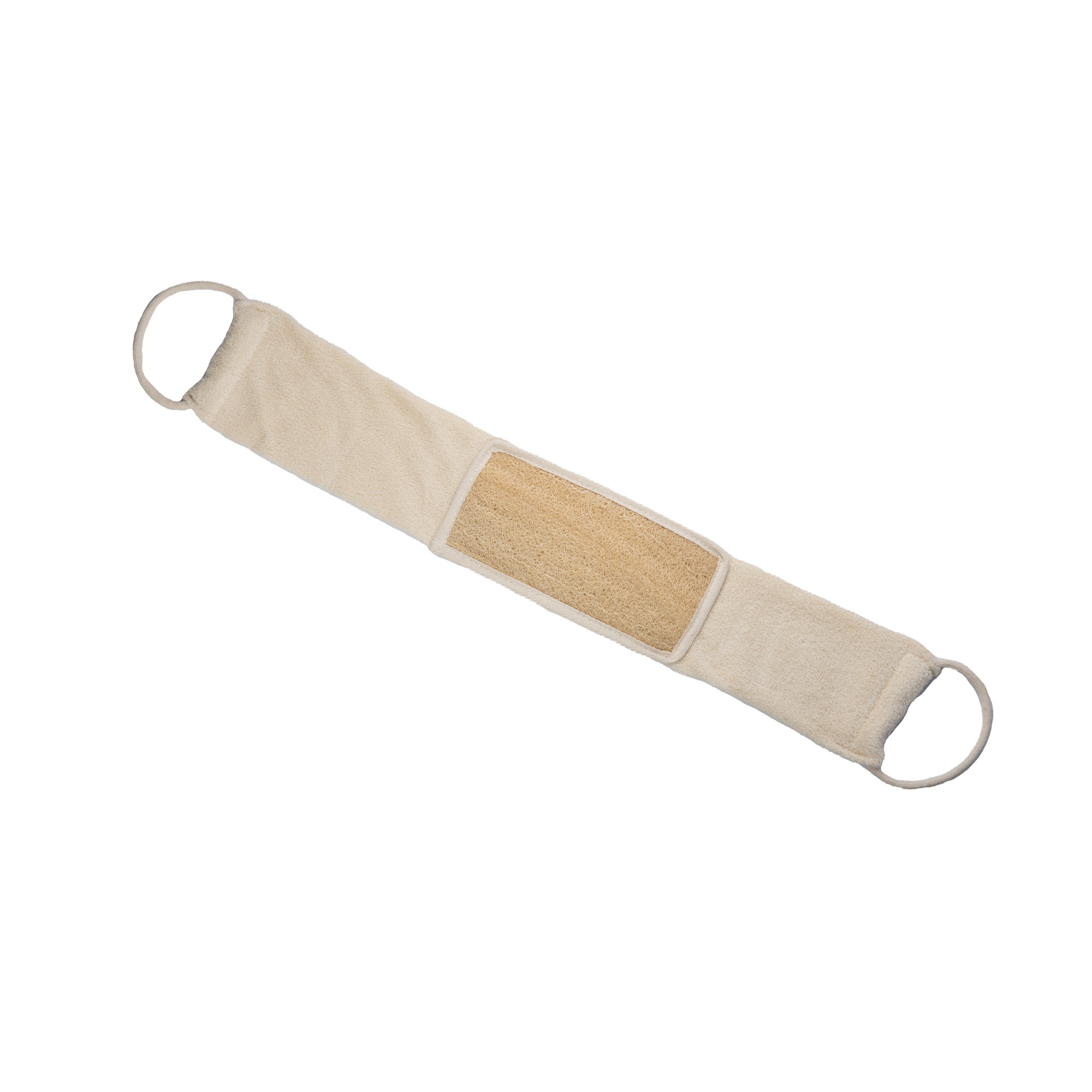 Naturae Donum Dubbelzijdige Scrubband Katoen & Loofah zorgt voor een ultieme huidverzorging onder de douche of in bad. Deze unieke band heeft 2 kanten met aan de ene kant zacht katoenen vezels en aan de andere kant de wat ruwere vezels van Loofah. U begint met de ruwe Loofah kant, deze zorgt voor een goede bloedcirculatie en is ideaal om de huid voor te bereiden op een schoonheidsbehandeling, om uw bruine kleur te verlengen en cellulitis te bestrijden. Daarna kunt u met de katoenen kant uw huid zachtjes reinigen en de dode huidcellen verwijderen.
