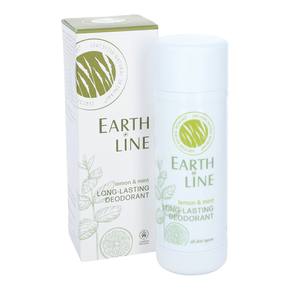 De Lemon & Mint Long-Lasting Deodorant van Earth-Line is een gecertificeerd natuurlijke crème-stick deodorant. De deodorant biedt langdurige en effectieve bescherming tegen ongewenste lichaamsgeuren zonder de poriën te blokkeren. Verrijkt met biologische kokosolie, shea butter en macadamia olie om de huid te voeden en in balans te brengen. Lemon & Mint is een onweerstaanbare combinatie van frisse citroen met een vleugje munt.