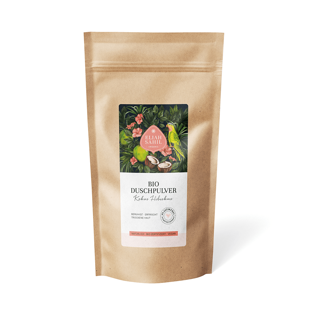 De Biologische Douchepoeder Kokos Hibiscus van Eliah Sahil is een biologisch en duurzaam alternatief voor douchegel. De innovatieve douchepoeders van Eliah Sahil onderscheiden zich door de pH-neutrale formules, 100% natuurlijke ingrediënten en een zero-waste verpakkingsconcept. Wasactieve stoffen uit wasnootschillen, saponine uit zeepkruid en geneeskrachtige klei reinigen de huid zacht zonder irriterende tensiden. De plantaardige verzorgende formule zorgt voor een aangenaam huidgevoel wat ook na het douchen aanhoudt. De licht schuimende douchepoeder met heerlijk frisse kokos hibiscus geur hydrateert, verzorgt en verfrist. Bevat o.a. amla, shikakai, haritaki en aloë vera.
