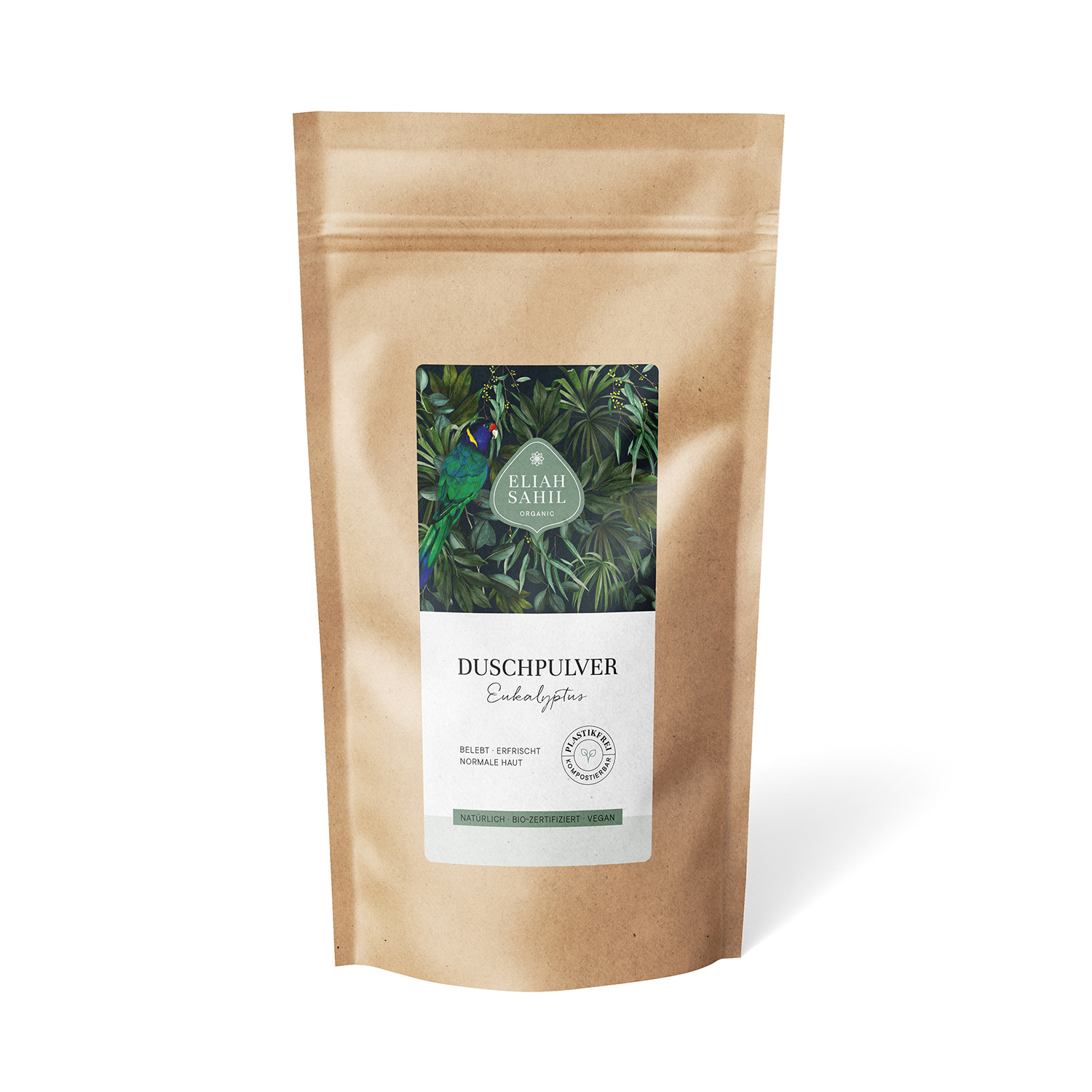 De Biologische Douchepoeder Eucalyptus van Eliah Sahil is een biologisch en duurzaam alternatief voor douchegel. De innovatieve douchepoeders van Eliah Sahil onderscheiden zich door de pH-neutrale formules, 100% natuurlijke ingrediënten en een zero-waste verpakkingsconcept. Wasactieve stoffen uit wasnootschillen, saponine uit zeepkruid en geneeskrachtige klei reinigen de huid zacht zonder irriterende tensiden. De plantaardige verzorgende formule zorgt voor een aangenaam huidgevoel wat ook na het douchen aanhoudt. De licht schuimende douchepoeder met natuurlijke eucalyptusgeur verfrist en stimuleert. Bevat o.a. amla, shikakai, haritaki en aloë vera.