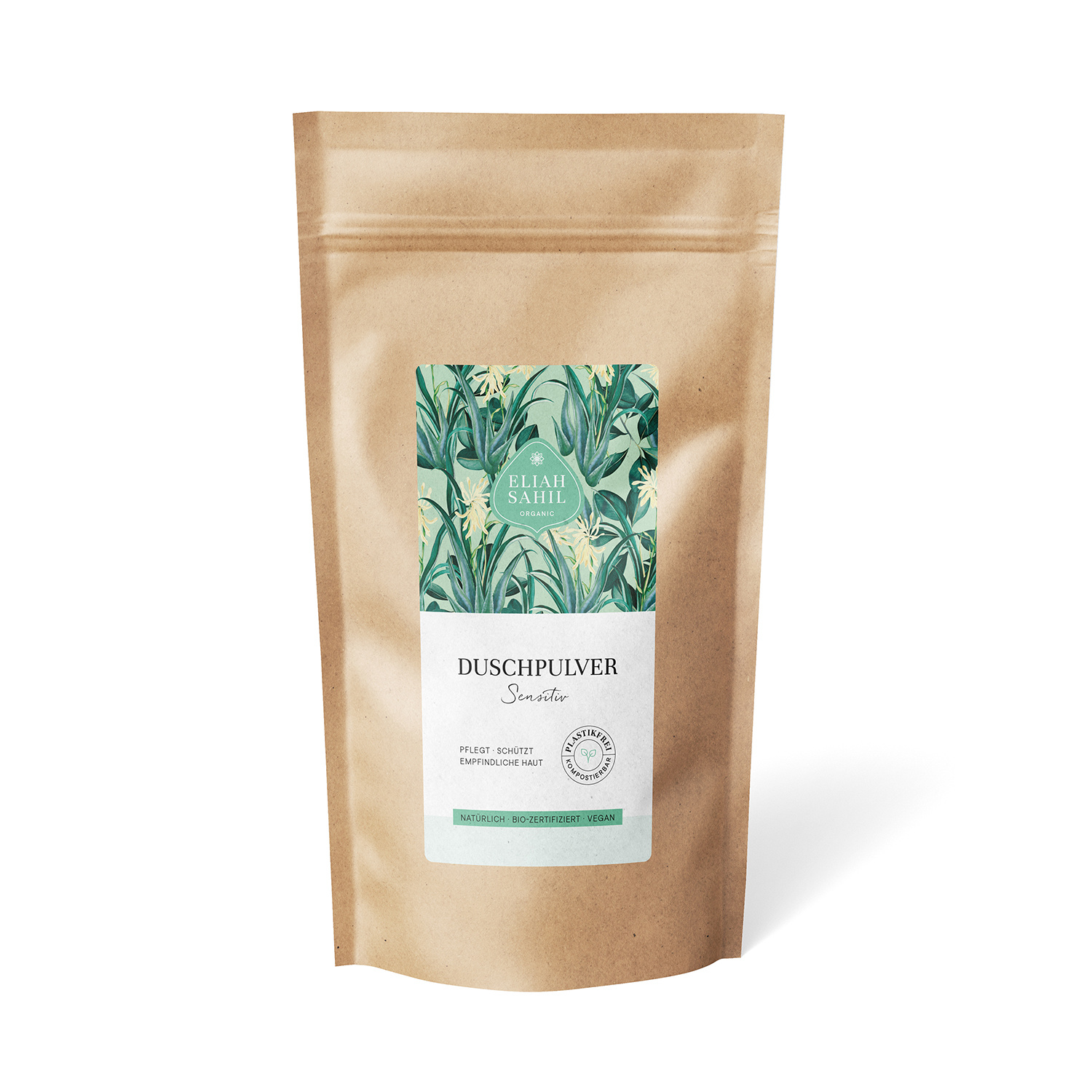 De Biologische Douchepoeder Sensitief van Eliah Sahil is een biologisch en duurzaam alternatief voor douchegel. Zeer geschikt voor de dagelijkse reiniging van de gevoelige en naar allergiën neigende huid. De innovatieve douchepoeders van Eliah Sahil onderscheiden zich door de pH-neutrale formules, 100% natuurlijke ingrediënten en een zero-waste verpakkingsconcept. Wasactieve stoffen uit wasnootschillen, saponine uit zeepkruid en geneeskrachtige klei reinigen de huid zacht zonder irriterende tensiden. De plantaardige verzorgende formule zorgt voor een aangenaam huidgevoel wat ook na het douchen aanhoudt. De licht schuimende douchepoeder is vrij van etherische oliën Bevat o.a. amla, shikakai, haritaki, aloë vera en spirulina.