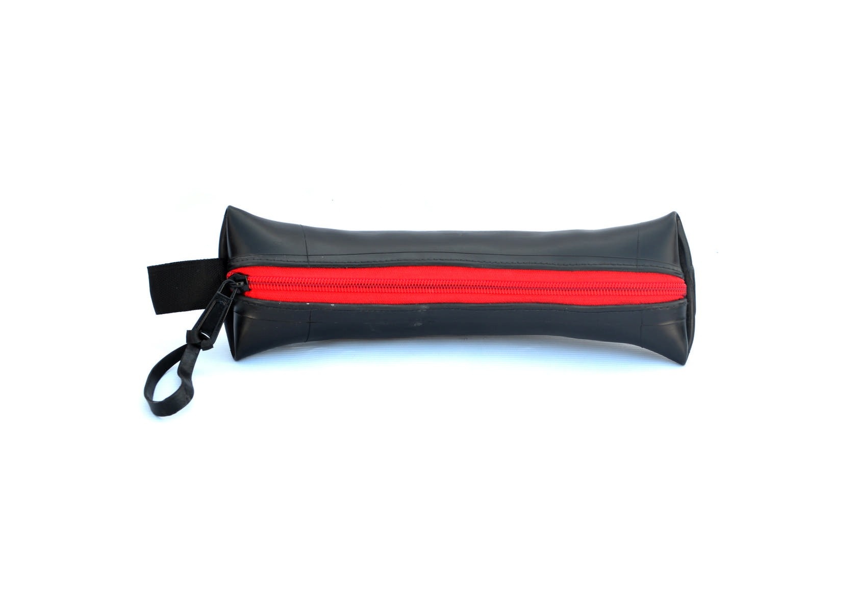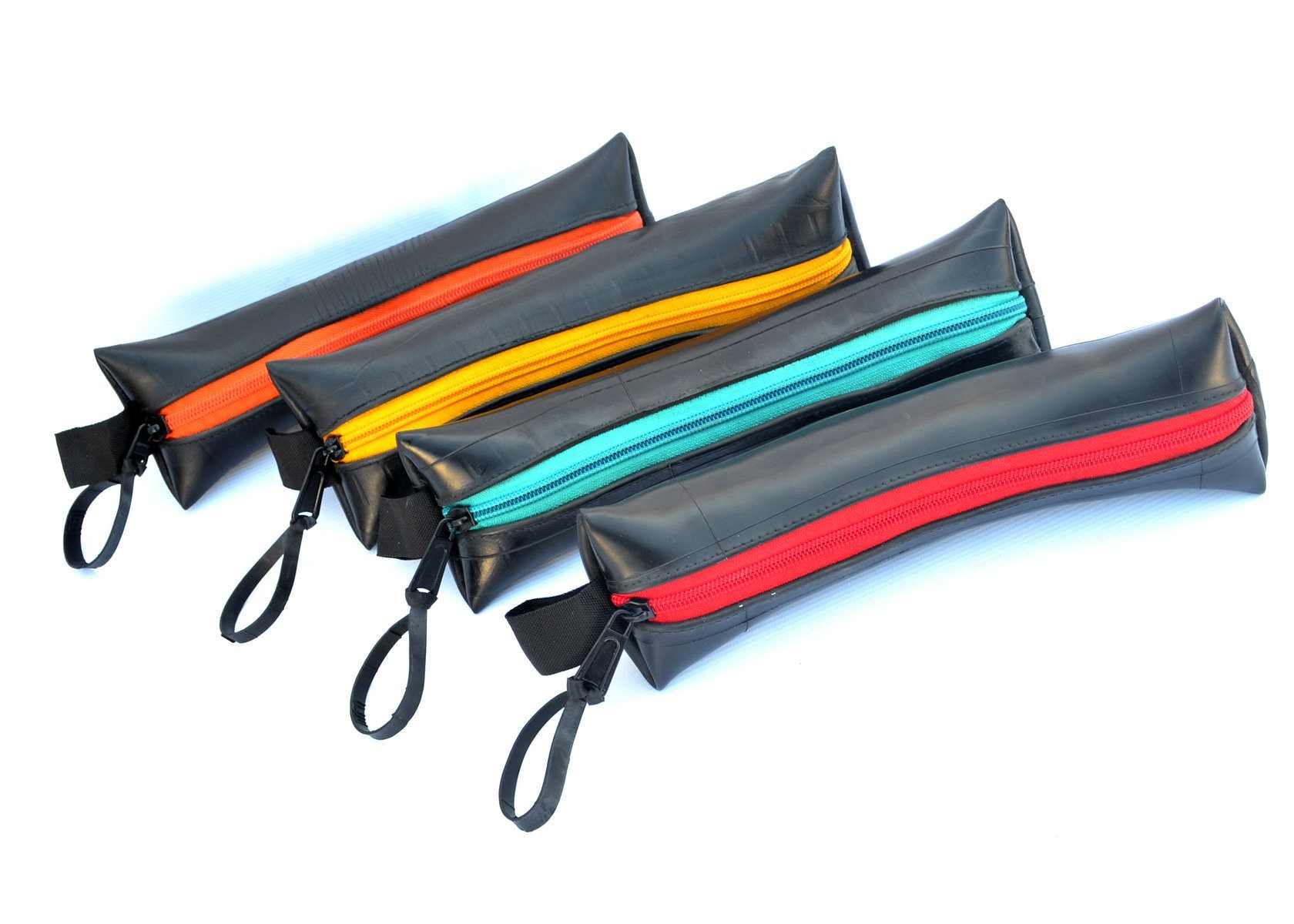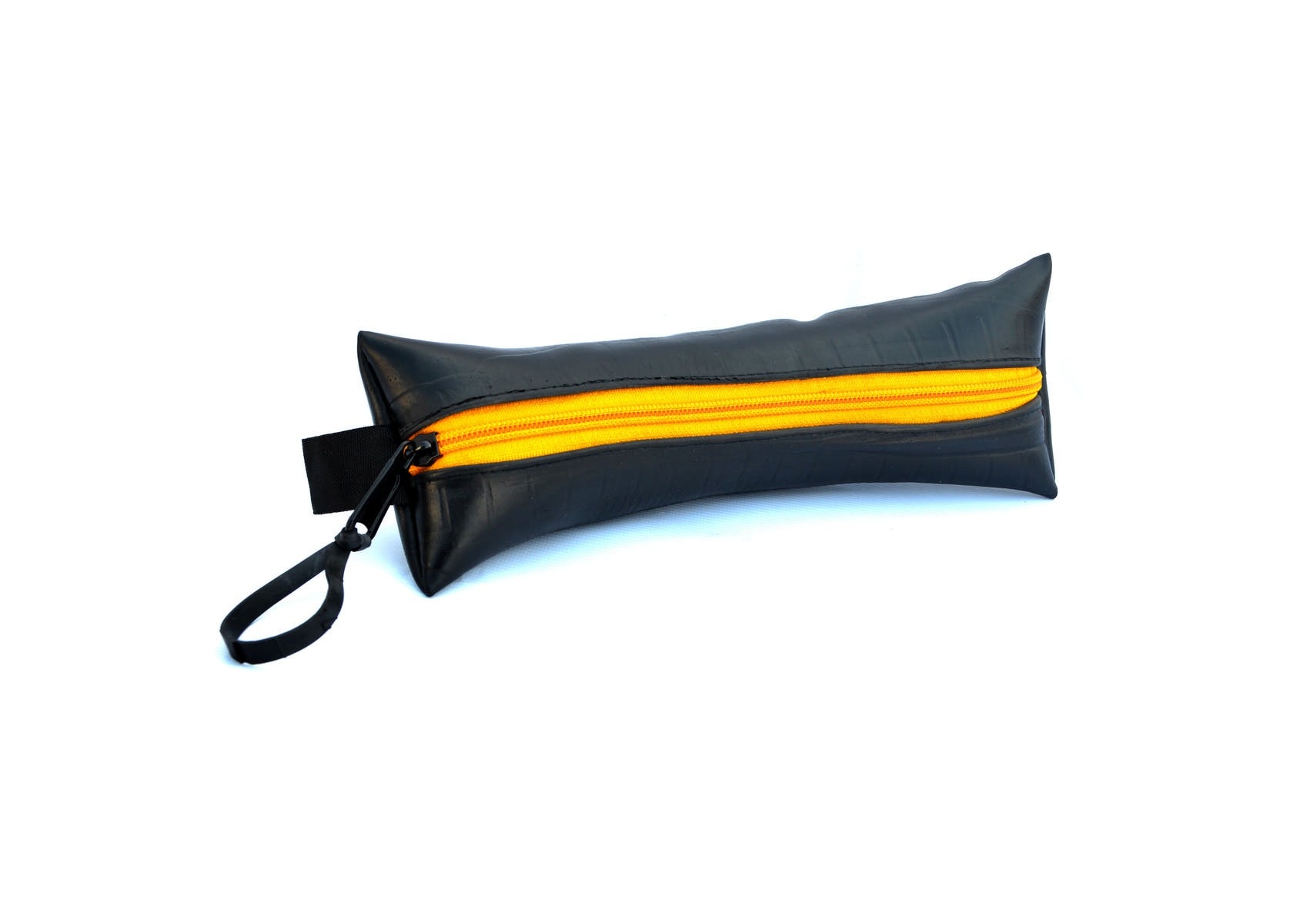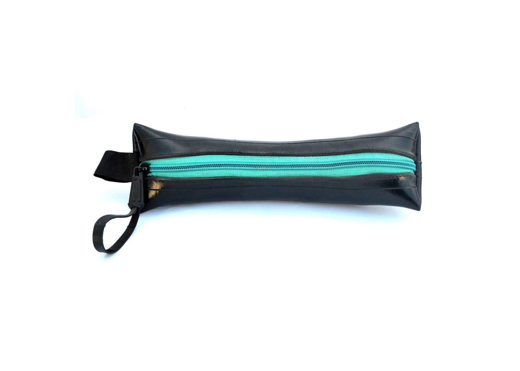 Bij het handgemaakte Boom Banana Etui van geupcyclede binnenband zie je in een oogopslag wat er allemaal inzit. De gele, oranje, rode of turquoise rits bevindt zich namelijk in het midden zodat je niet naar de bodem hoeft te ‘graven’ om het onderste uit het etui te halen. Hoe handig is dat! Net als de slimme draaglus trouwens.