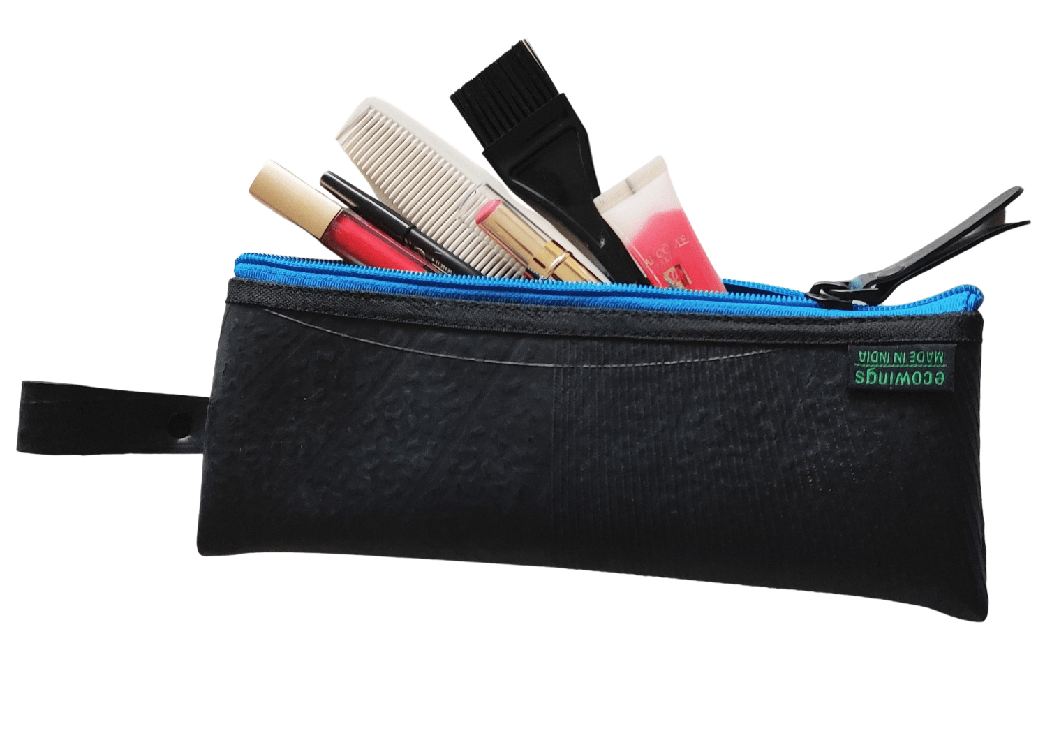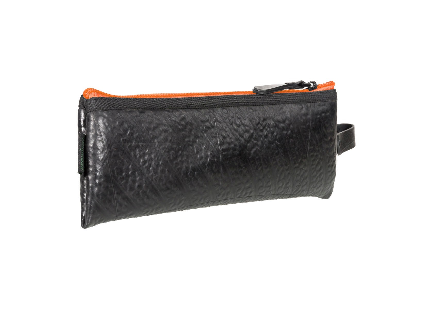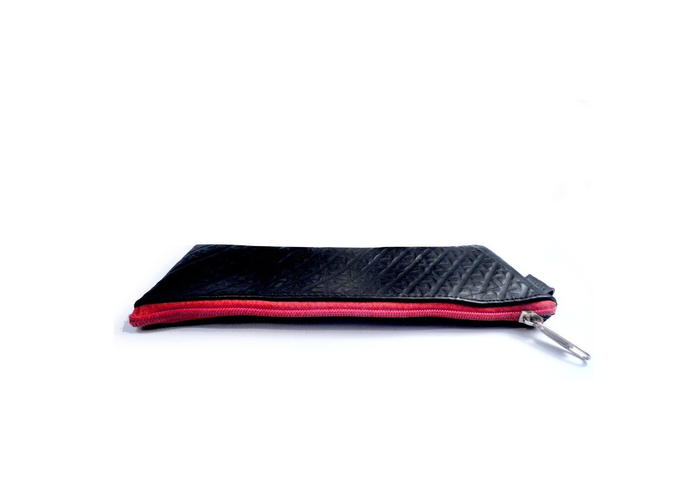 Met het handgemaakte Slik Etui van geupcyclede binnenband hoef je nooit meer te zoeken naar losse pennen of verdwaalde make-up. Vanaf nu hou je alles bij elkaar in dit handige opbergwondertje met slimme draaglus. En je hoeft ook niet meer bang te zijn dat punten van passers in je vingers prikken want die komen niet door het sterke rubber heen.