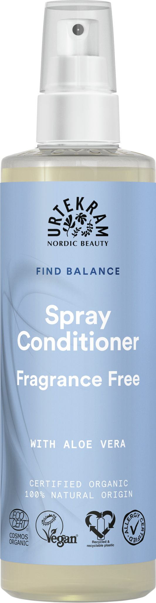 Urtekram Fragrance Free Spray Conditioner is een 100% natuurlijke leave-in sprayconditioner, ontwikkeld voor een gevoelige hoofdhuid. De formule bevat verzorgende ingrediënten afkomstig van broccoli, hydraterende aloë vera en glycerine die je haar en hoofdhuid voeden. Helpt je haar te ontwarren en het glad, zacht en gewichtloos te houden. Spray in zowel droog als nat haar en spoel niet uit. Schudden voor gebruik. Gecertificeerd door Ecocert Cosmos Organic, 100% natuurlijke oorsprong en veganistisch.
