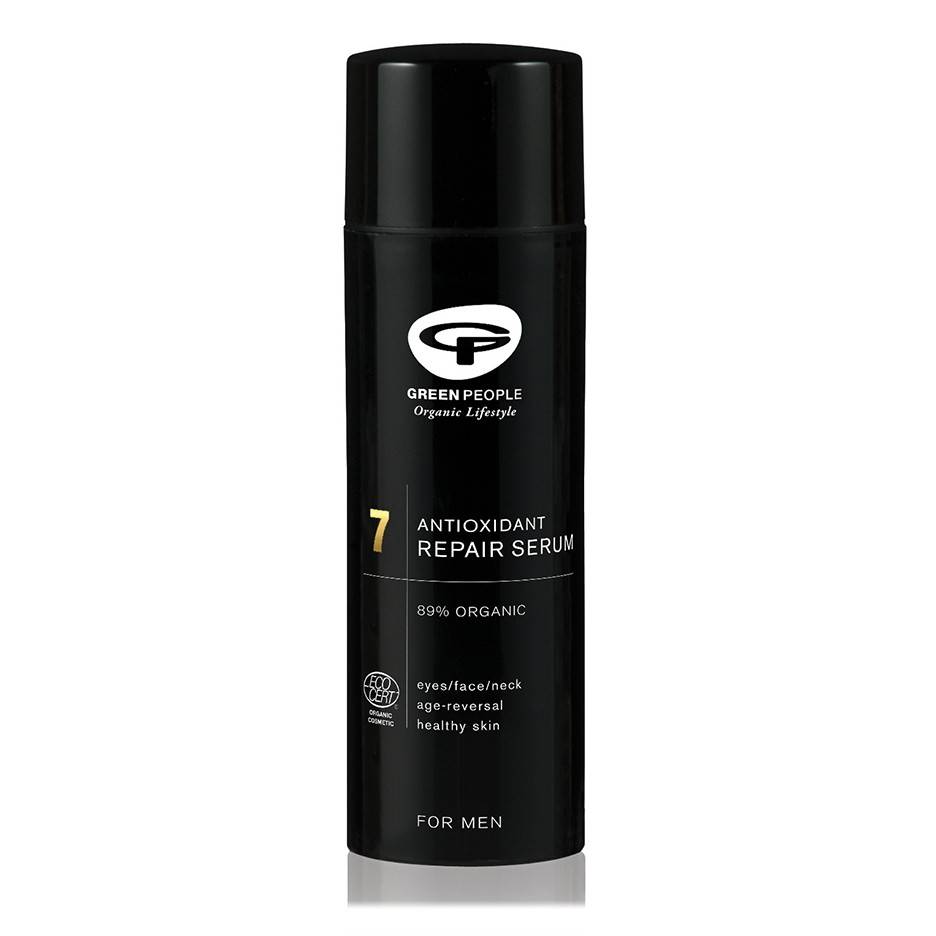 Het For Men - Antioxidant Repair Serum van Green People is een gecertificeerd biologisch gezichtsserum voor de man met bewezen anti-ageing eigenschappen. Dit krachtige serum bevat klinisch bewezen ingrediënten die de huid verstevigen en rimpels verminderen. Het vertraagt de huidveroudering op krachtige wijze en is rijk aan antioxidanten die beschermen voor schade door vrije radicalen. Het Antioxidant Repair serum bevat o.a. sheabutter, zoete amandelolie, baicaline, tara struik extract, zeewier en olijfblad extract. Geschikt voor de gevoelige huid en bij eczeem en psoriasis.