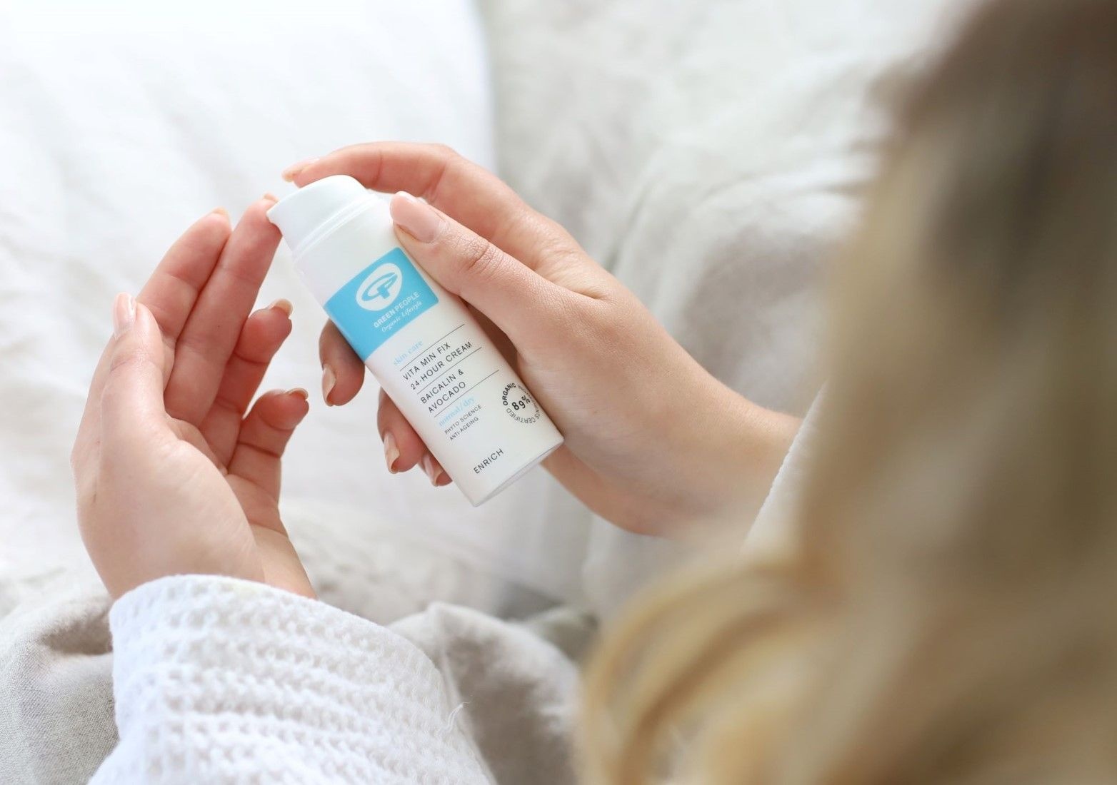 24-uur voedende dag & nachtcrème van Green People. Deze natuurlijke & vegan crème bevat kalmerende en anti-aging ingrediënten die de natuurlijke oliën van de huid herstelt.