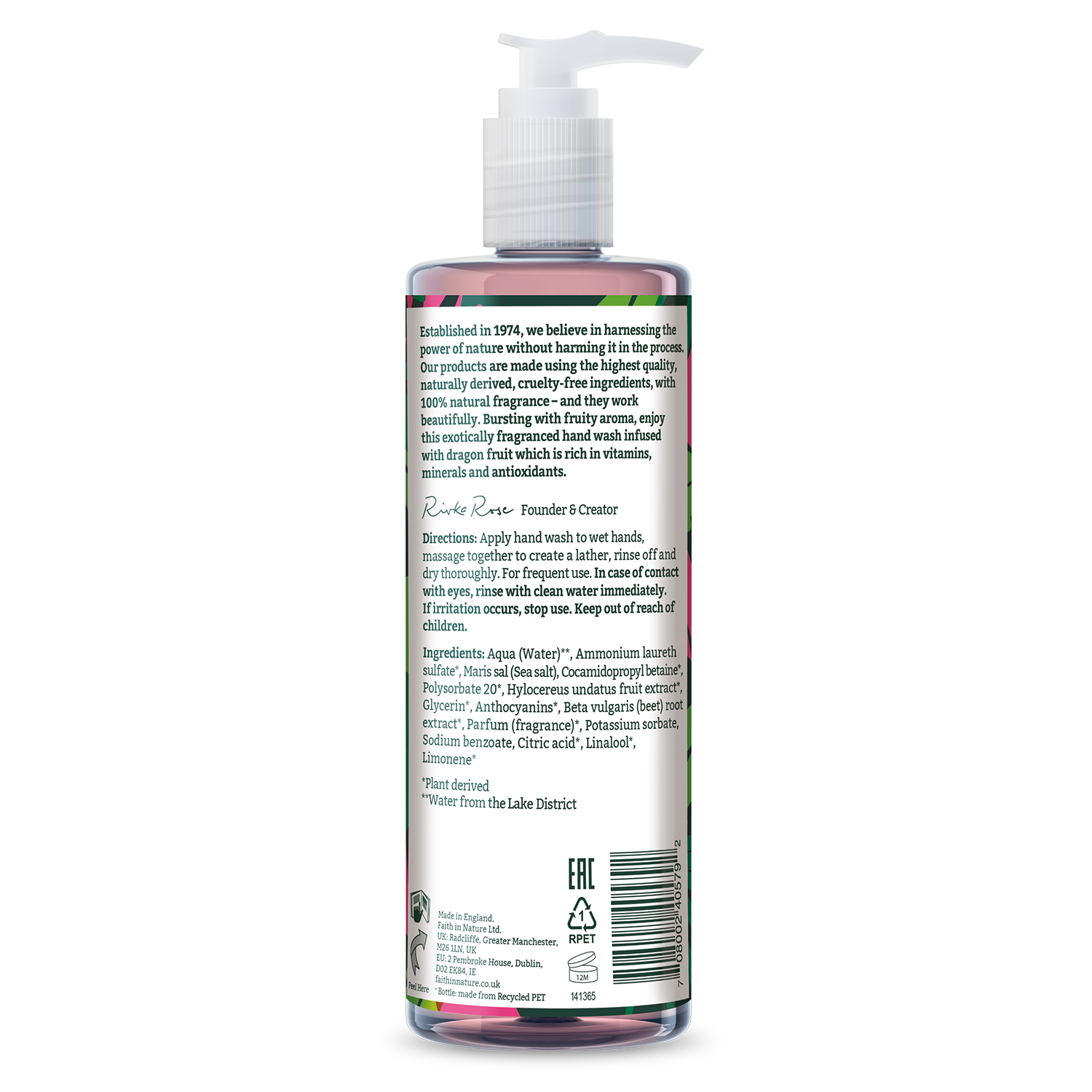 Dragon Fruit Handzeep van Faith in Nature zit boordevol fruitige aroma's. Deze exotisch geurende handzeep is doordrenkt met drakenfruit dat rijk is aan vitaminen, mineralen en antioxidanten.