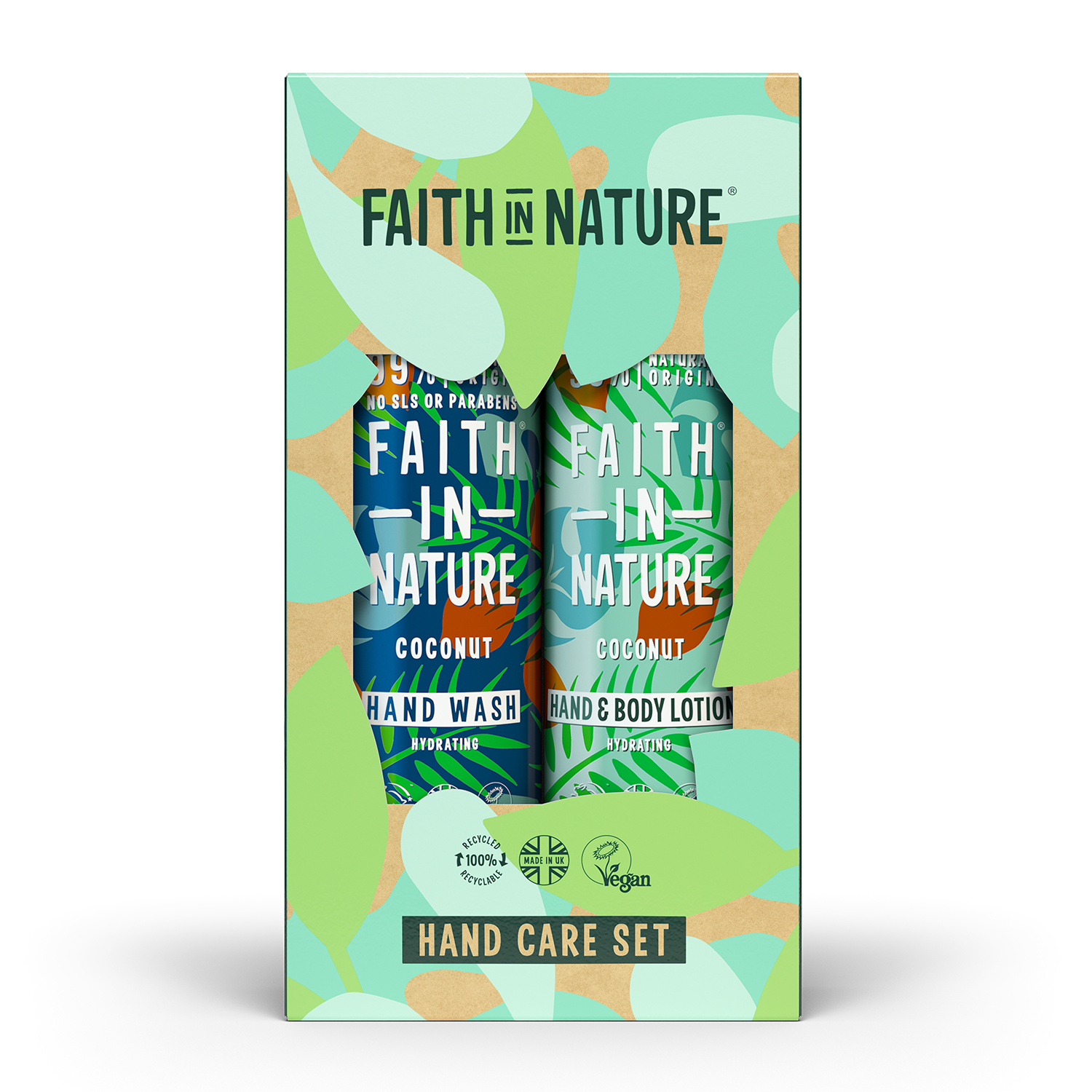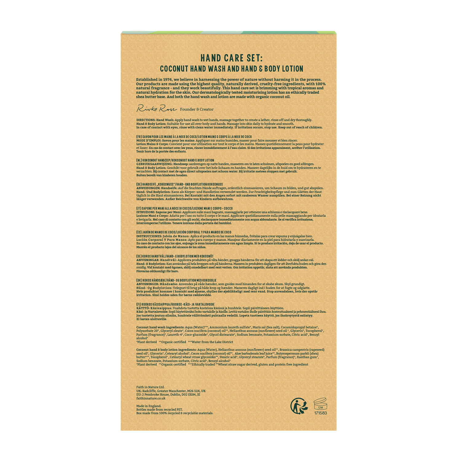 Faith in Nature Handverzorging Geschenkset zit boordevol tropische aroma's en natuurlijke hydratatie voor de huid. De dermatologisch geteste vochtinbrengende lotion heeft een ethisch verhandelde basis van sheaboter. En zowel de handzeep als de lotion zijn gemaakt met biologische kokosolie.